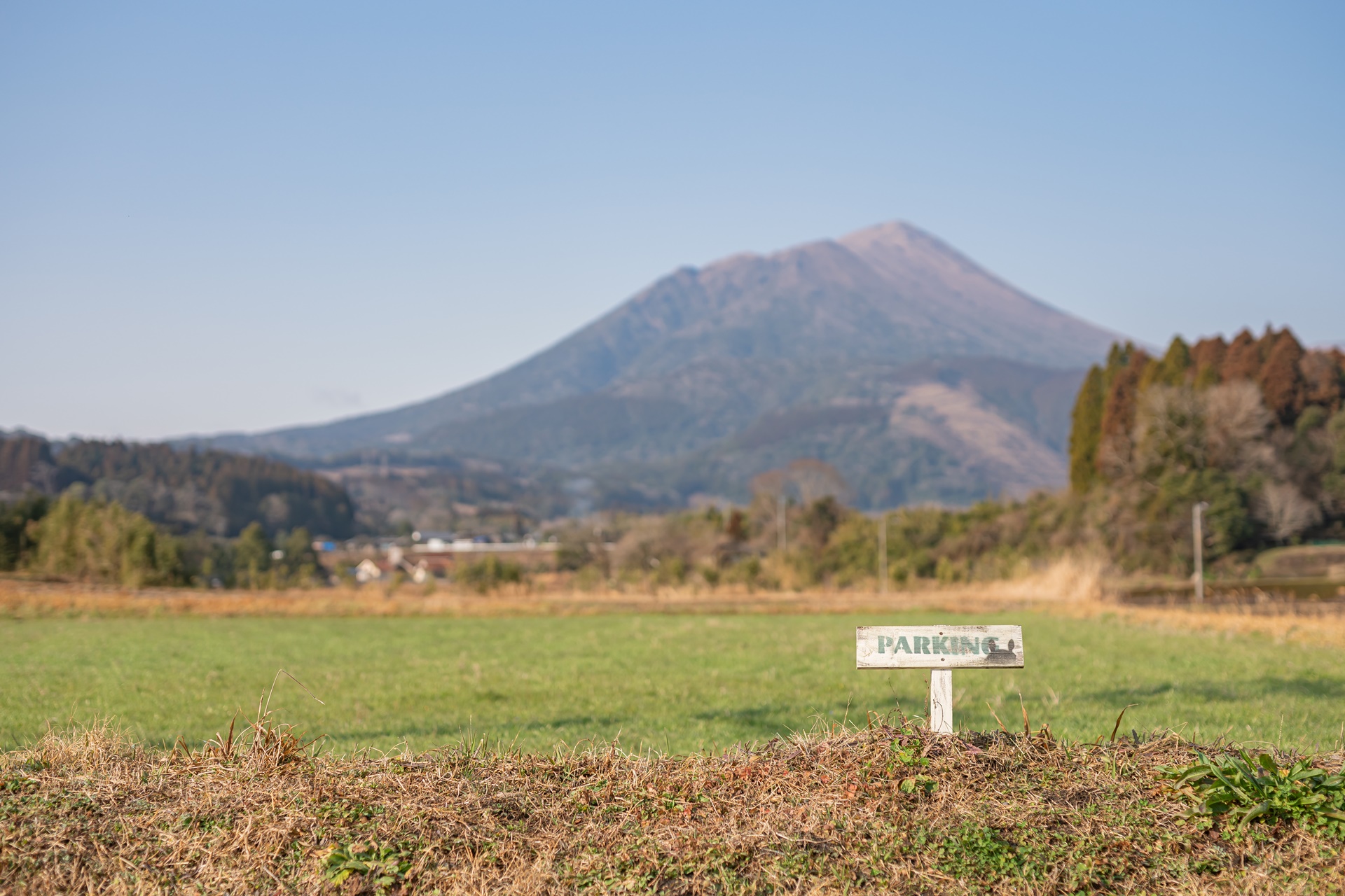 탁트인 논 앞으로 다카치호미네 산이 보여 멋진 풍경을 감상할 수 있습니다.