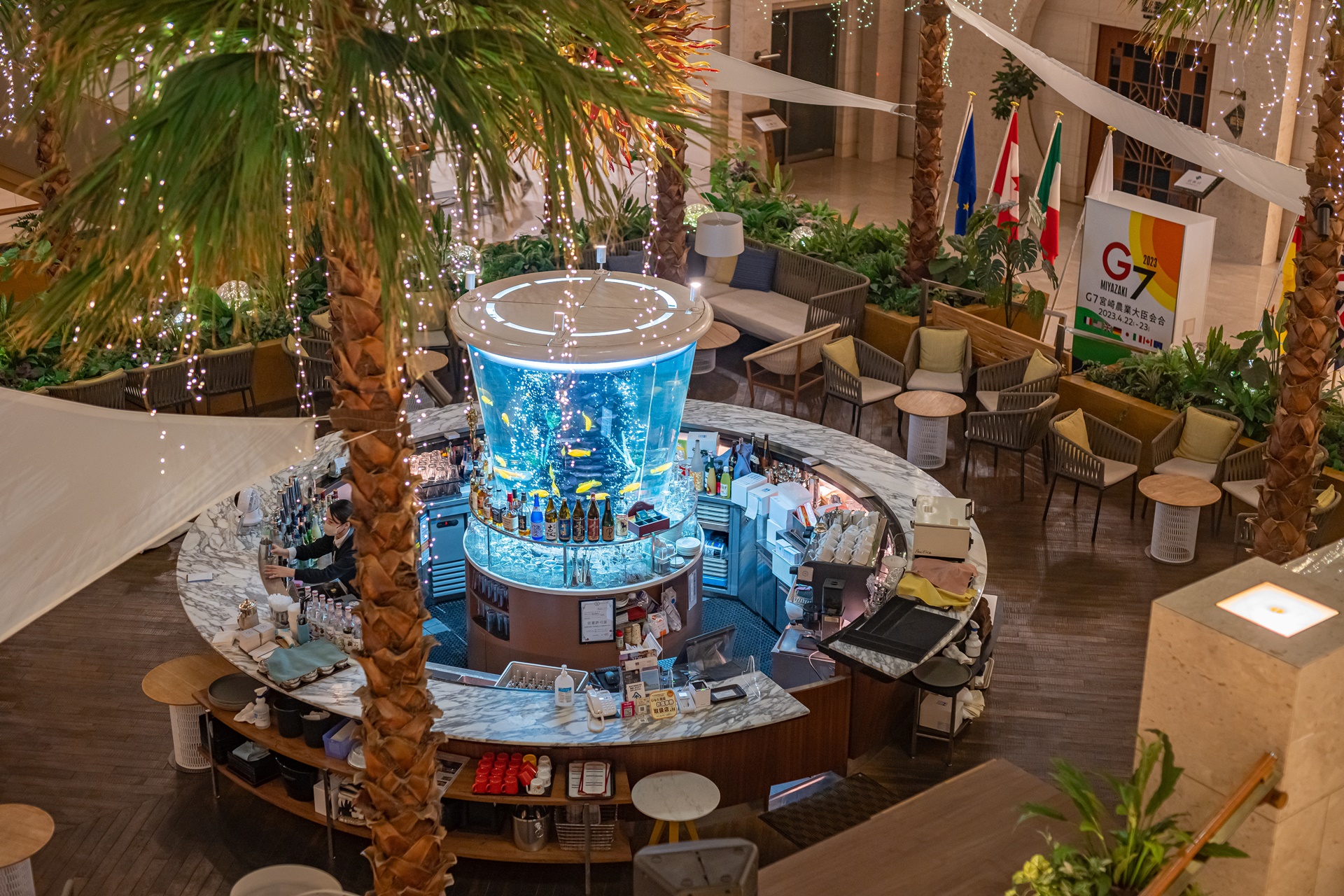 미야자키의 푸른 바다를 바라보며 음료와 함께 여유롭게 시간을 보내기 좋을 것 같습니다.