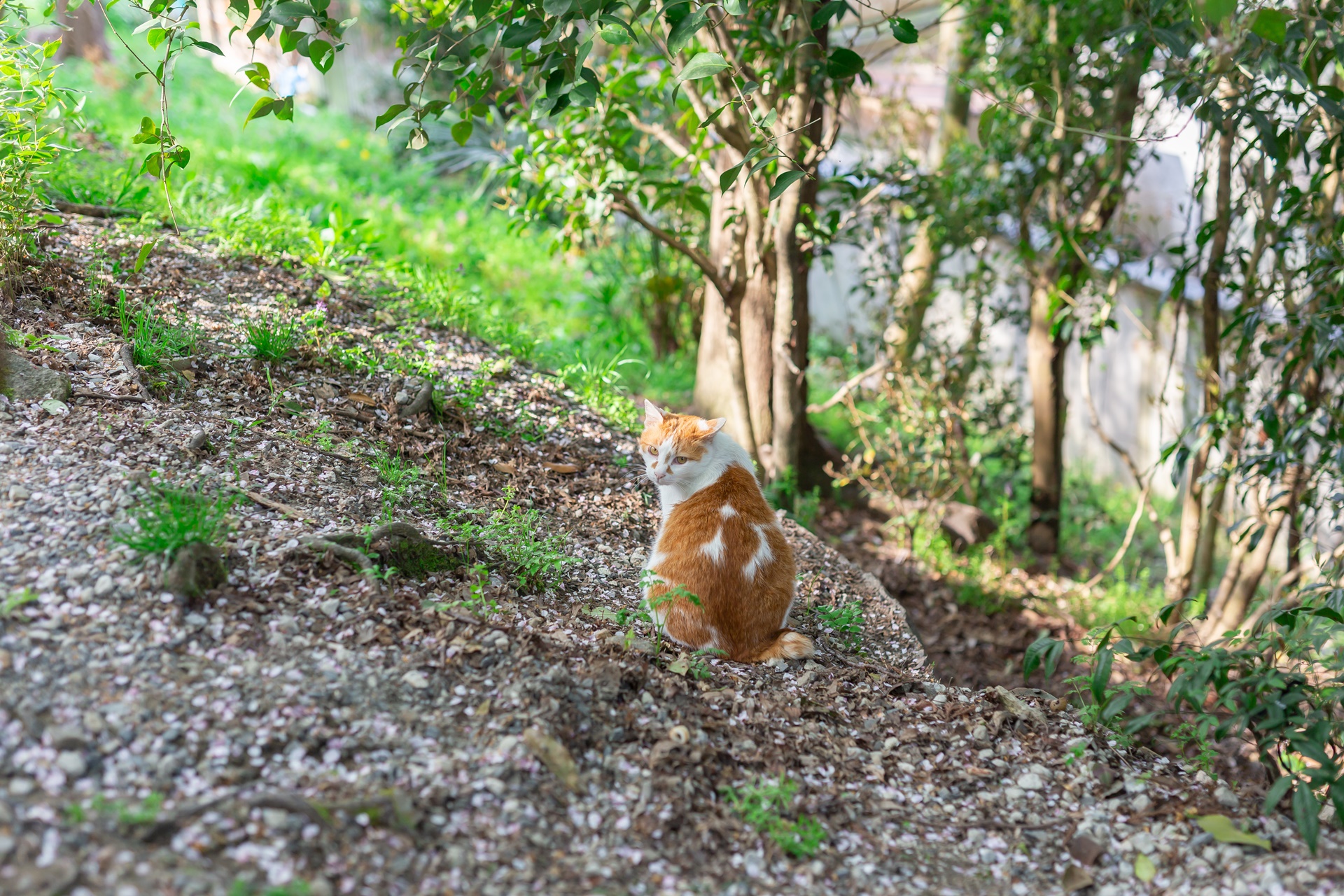 하얀 고양이는 풀을 뜯어 먹다가 철학의 길로 걸어옵니다.
