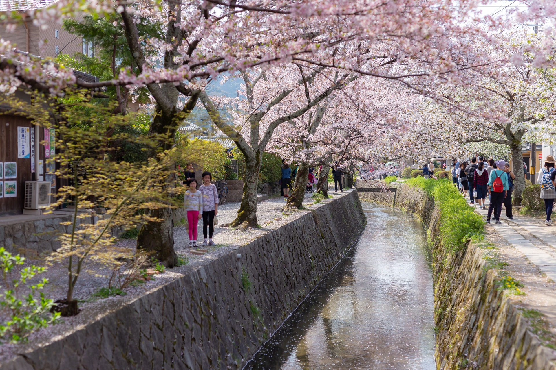 철학의 길은 비와호 수로를 따라 약 1.5km의 오솔길이 계속됩니다. 수로에는 벚꽃 잎이 가득하며 일본의 길 100선에 꼽히는 산책로로 선정되었습니다. 풍경이 아름다워 많은 사람들이 이 길을 찾게 되며 벚꽃 시즌 철학의 길을 걸으며 보이는 풍경은 마치 한 폭의 그림과 같습니다.