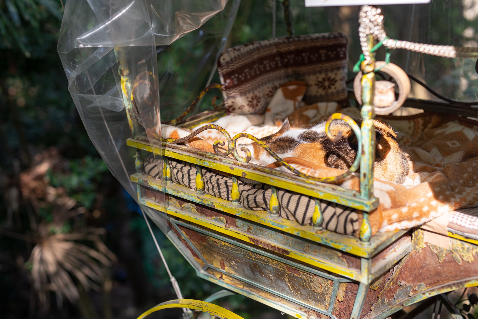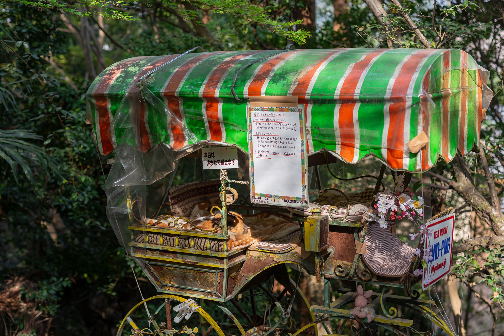 철학의 길 1.5km의 길 중 중간 이후의 지점 (긴가쿠지에서 출발 할 경우, 난젠지, 에이칸도에서 출발할 경우는 금방 나오게 됩니다.) 에는 철학의 길 길 고양이들의 쉼터인 마차가 있으며 이 주변에 철학의 길 길고양이들이 많이 모여 있습니다.