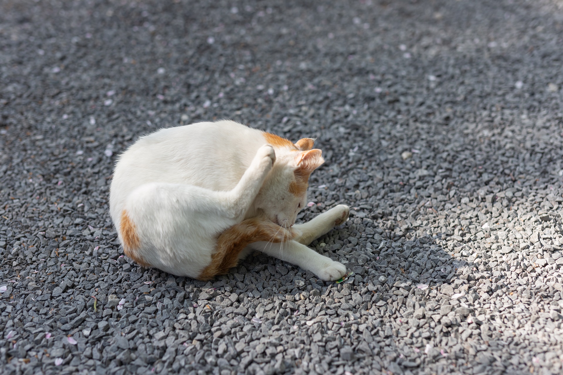 햇살이 비치는 철학의 길에서 그루밍을 합니다.