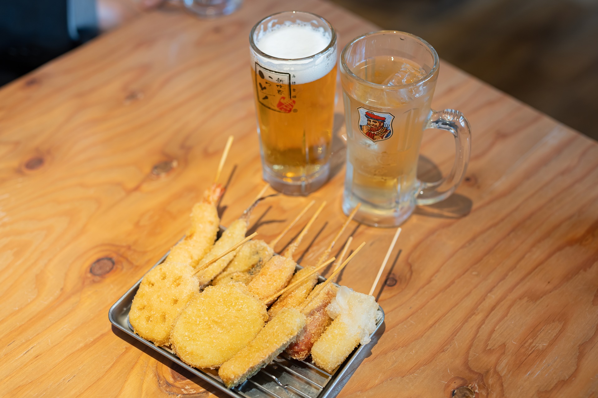 맥주에 딱 어울리는 안주인 쿠시카츠, 시원한 하이볼에도 아주 잘 맞았습니다.