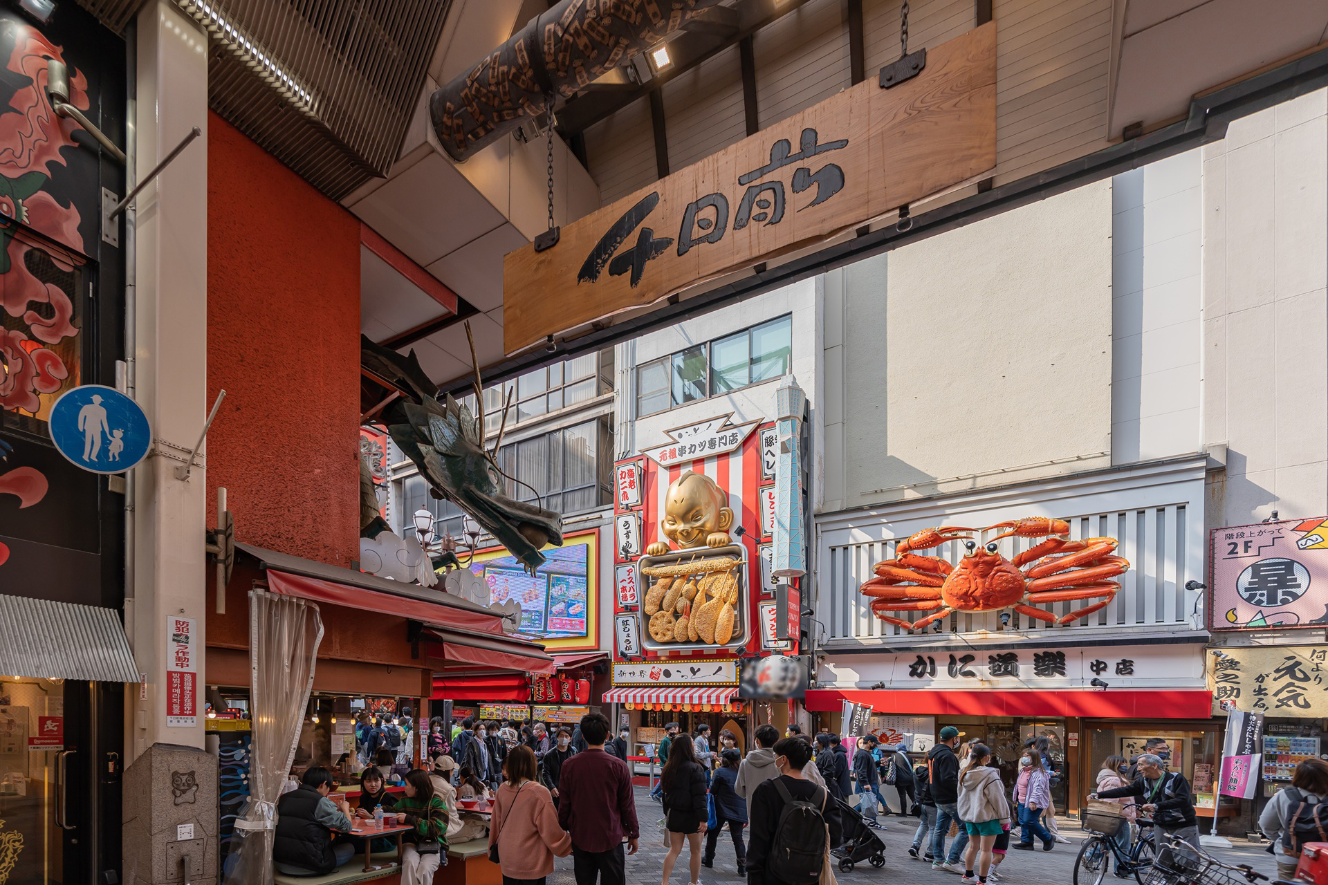 돈키호테, 앗치치혼포, 이치란등 인가 가게들이 많기도 하고 이곳의 다리 위에서 도톰보리 강의 야경을 감상하거나 사진을 찍는 사람들이 많은데 가게 안에서 편하게 구경할 수 있습니다. 저녁에 이곳에서 쿠시카츠를 먹으며 야경을 감상하고 돈키호테의 줄을 가늠해보며 사람이 적다 싶으면 나가서 쇼핑을 즐겨도 좋을 것 같습니다.