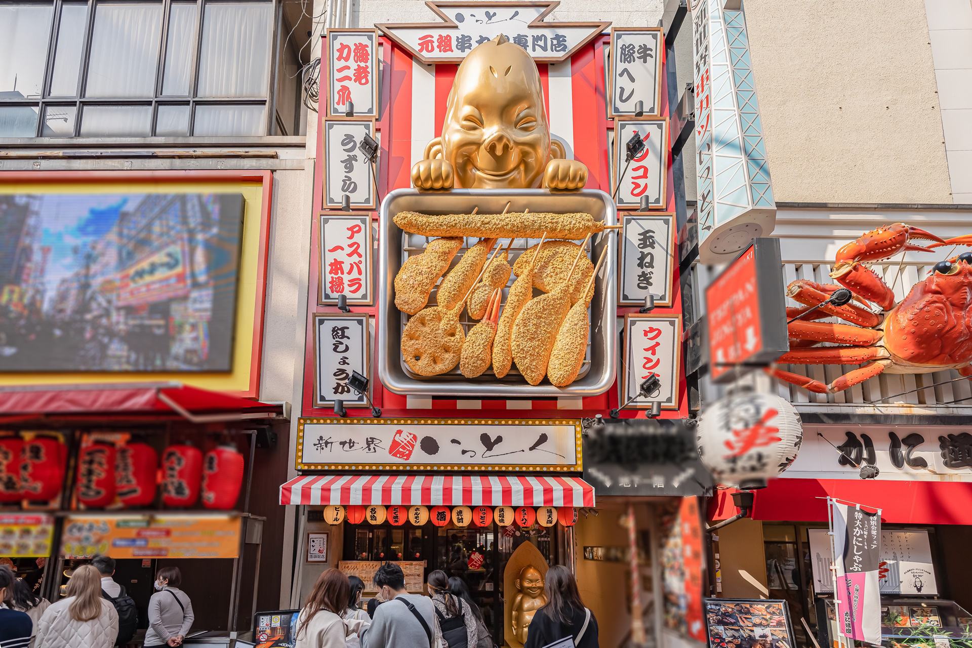 오사카 번화가 도톰보리 한복판에 위치한 쿠시카츠 전문점 신세카이 쿠시카츠 잇토쿠 도톰보리