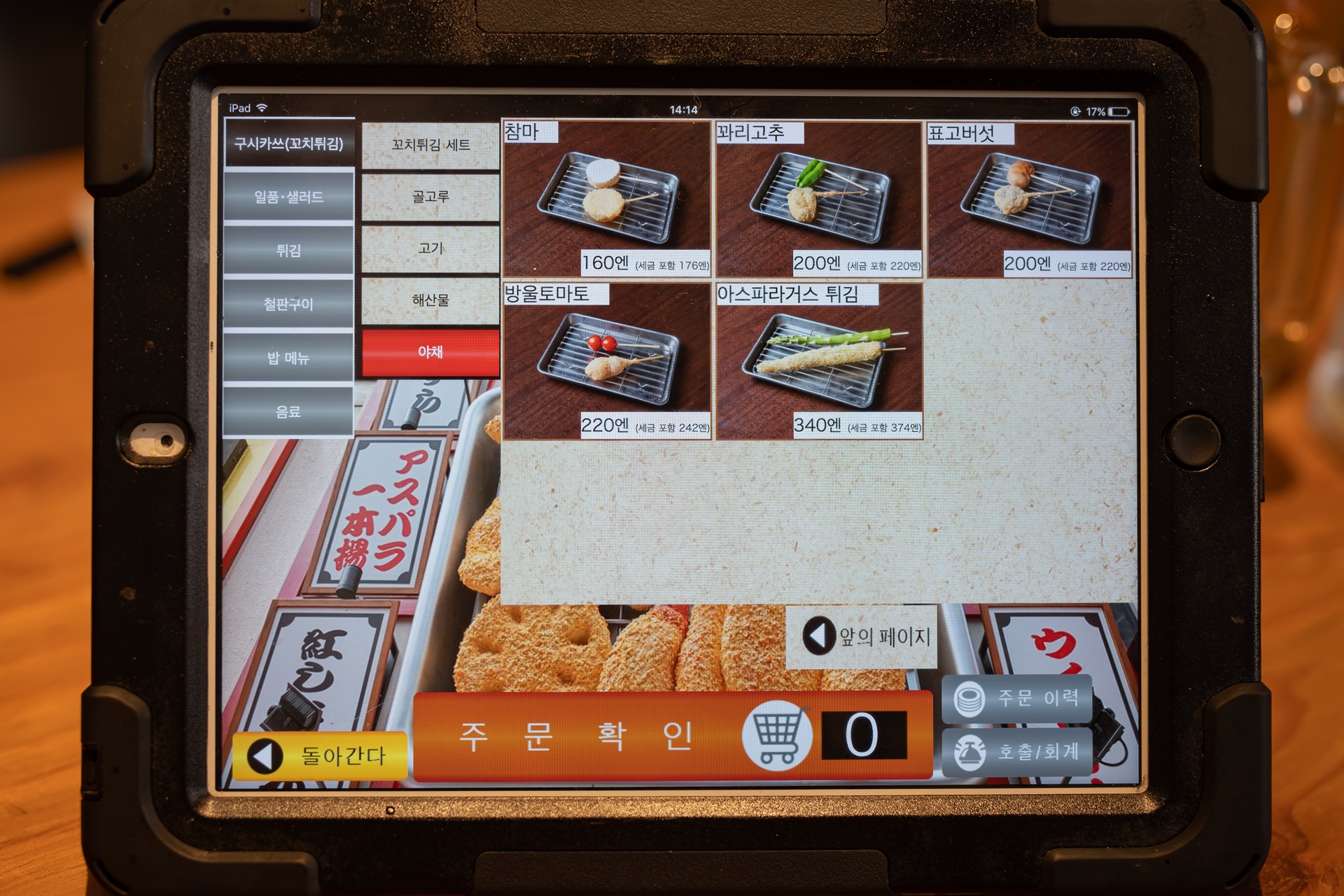터치 판낼을 보며 주문을 해보았는데