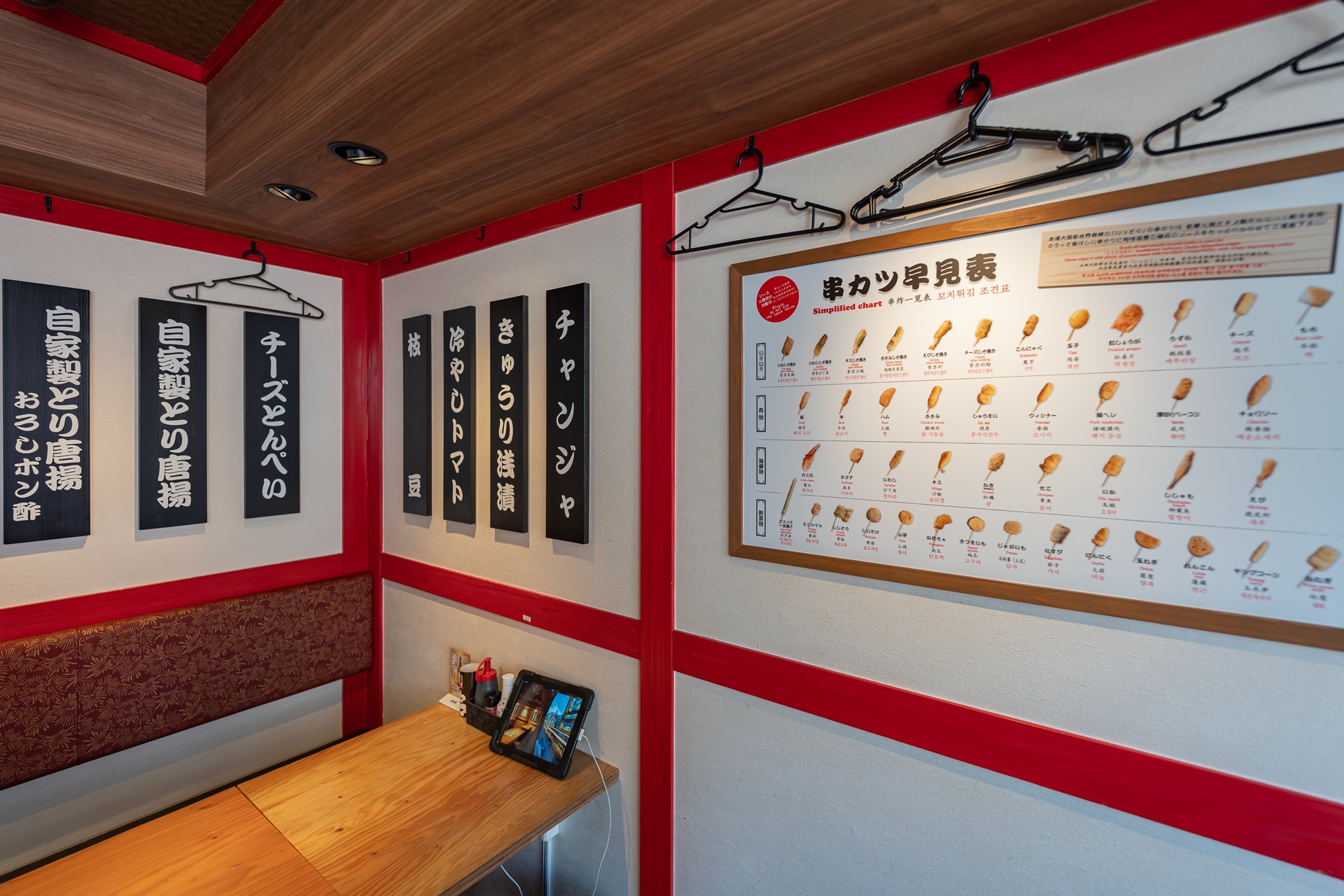 쿠시카츠 꼬치 튀김 안내 메뉴가 한글과 함께 큼지막하게 벽에 붙어 있었습니다.