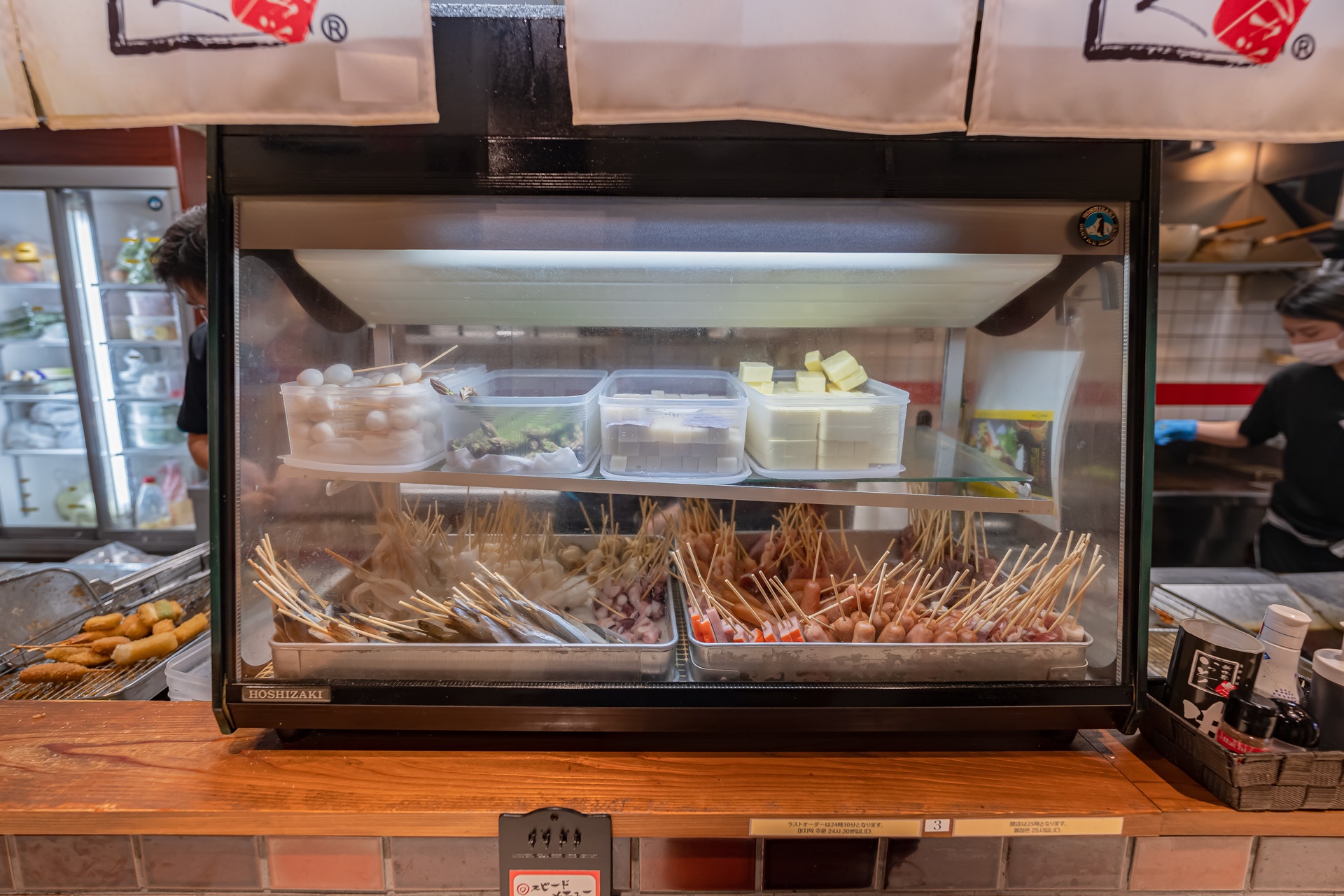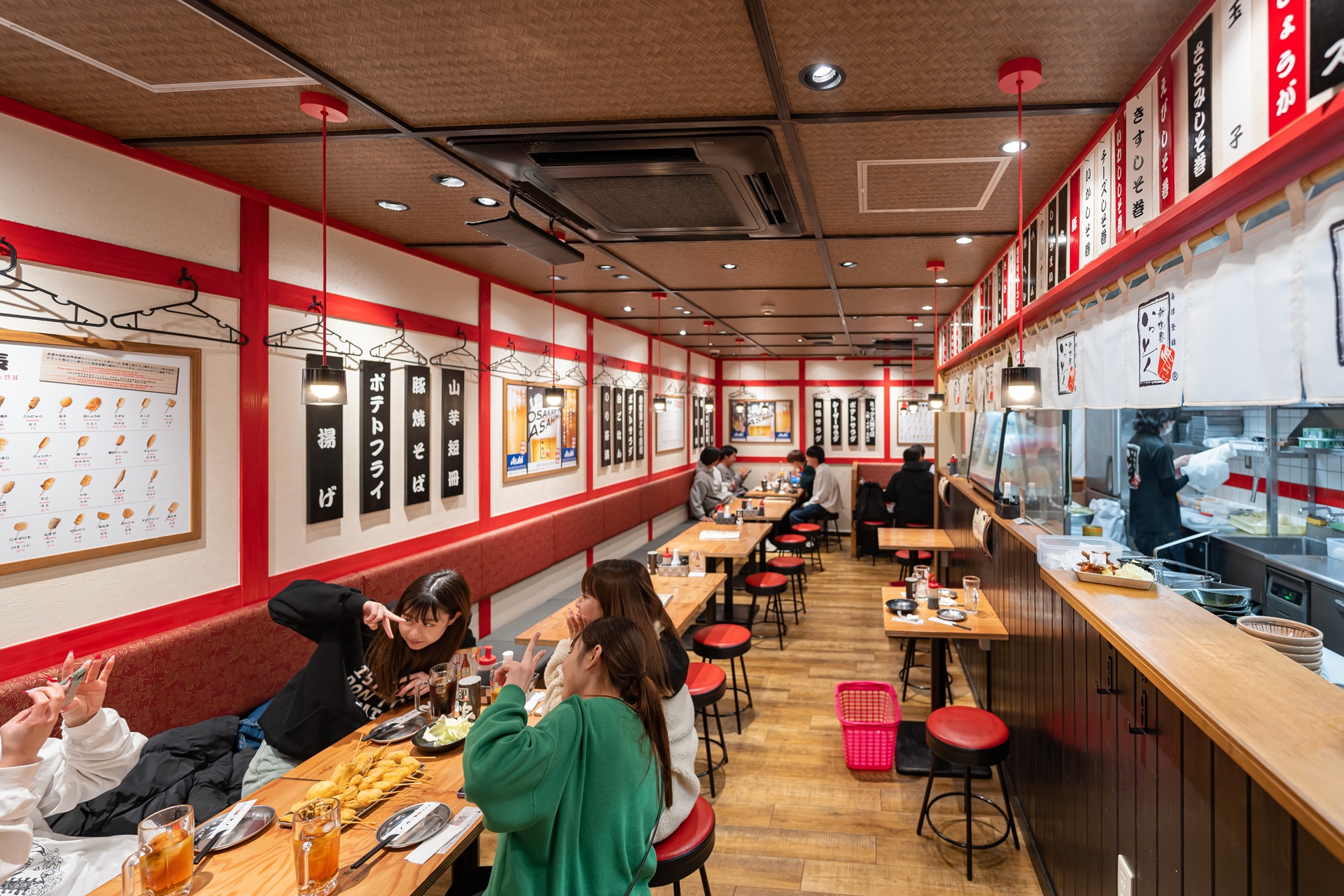 카운터 자리에는 혼자 온 분들이 많았고 가볍게 맥주 한 잔과 쿠시카츠를 즐기고 있었습니다.