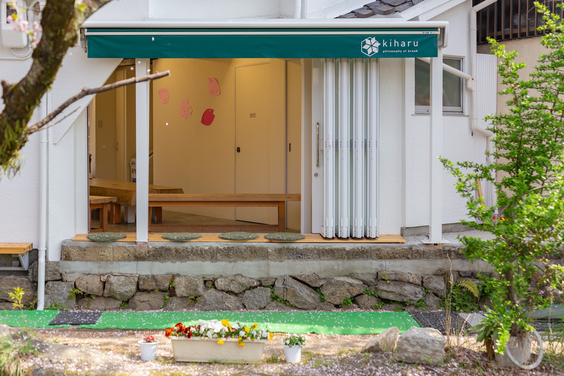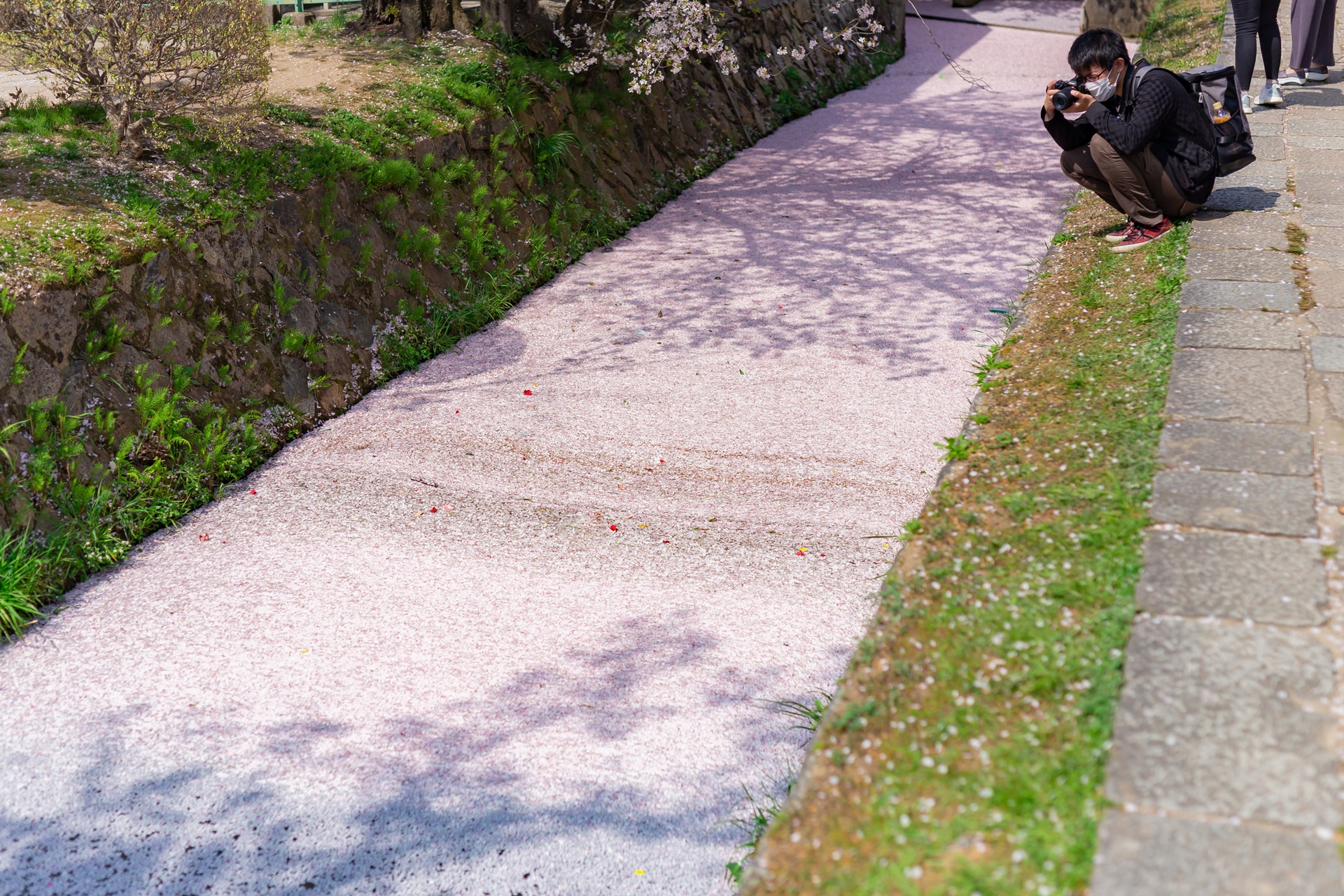 벚꽃 비가 내려 철학의 길 곳곳을 벚꽃으로 물들입니다.