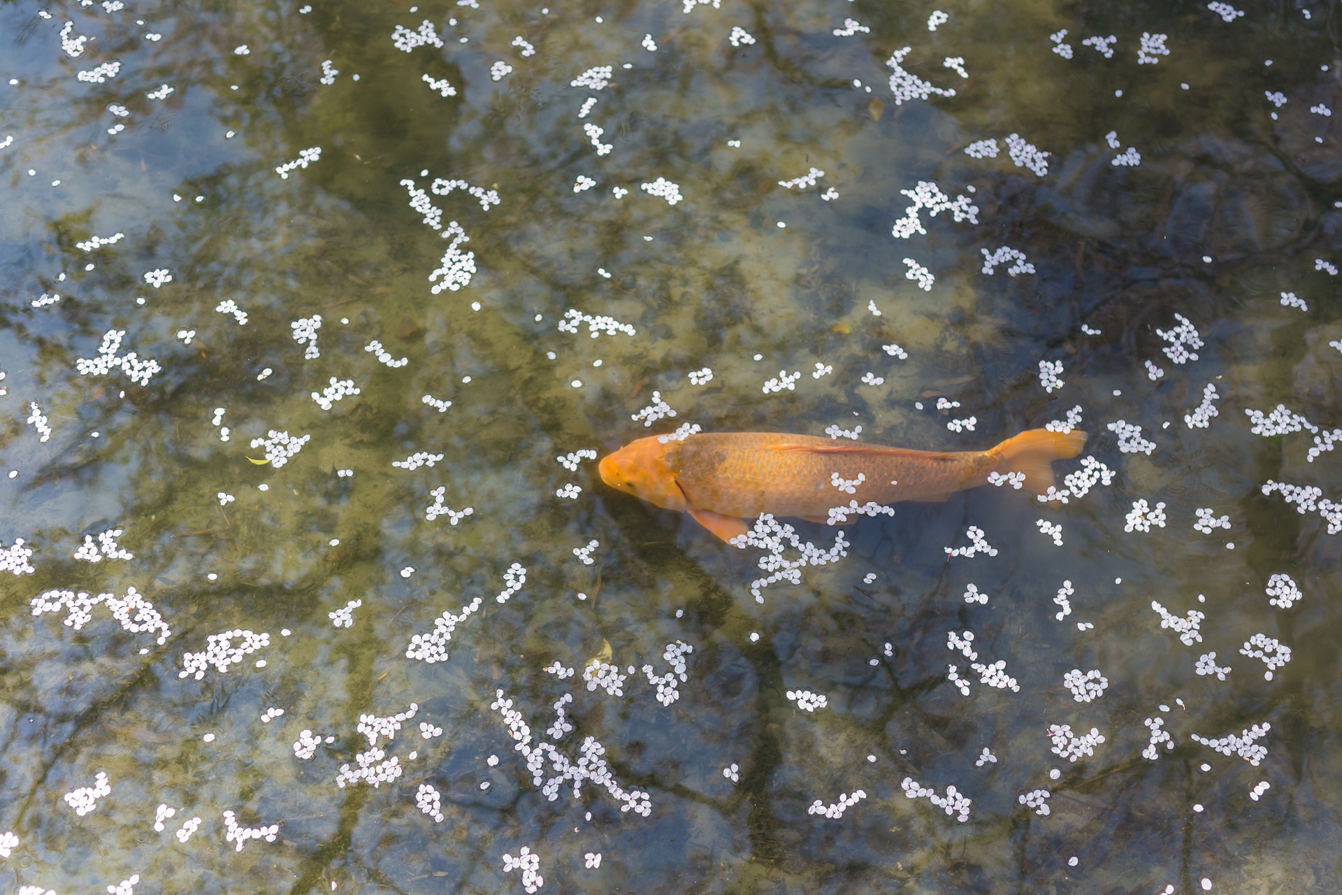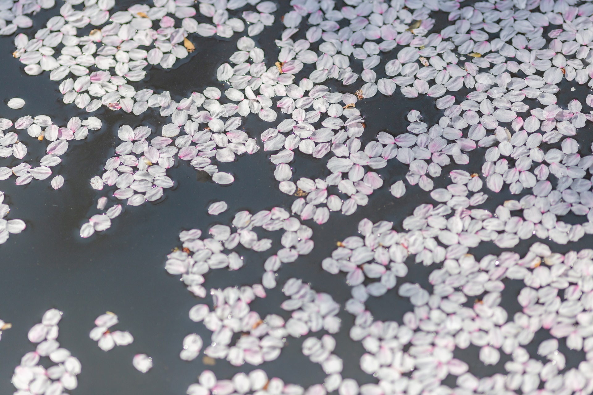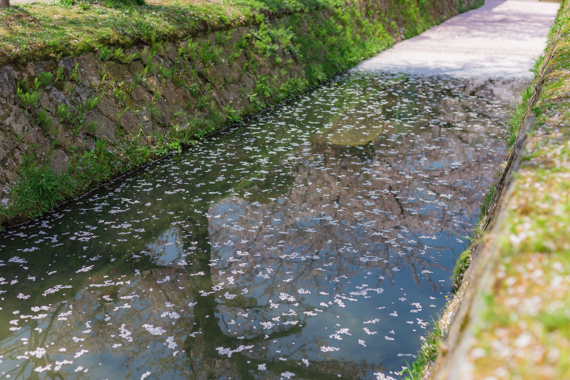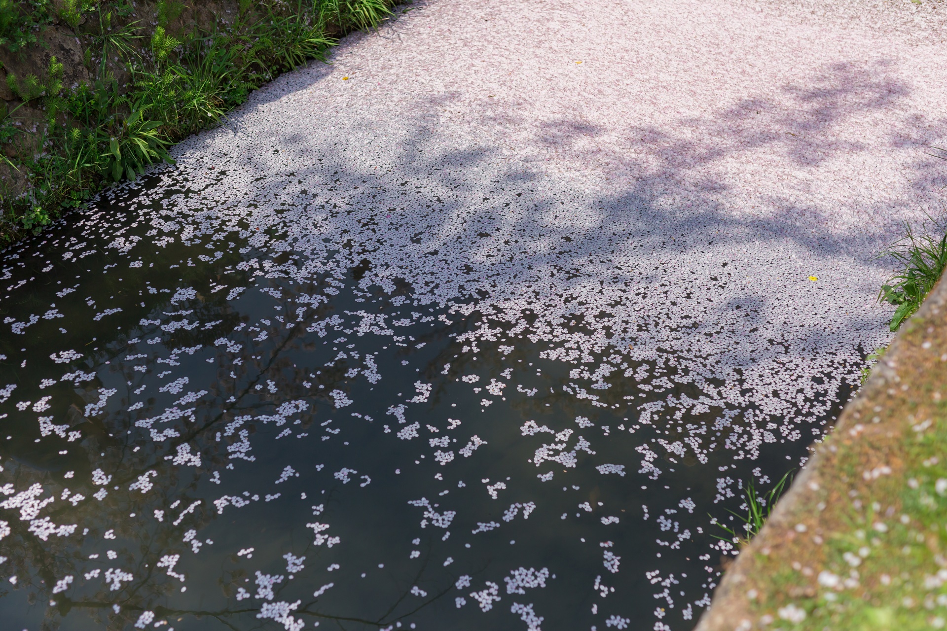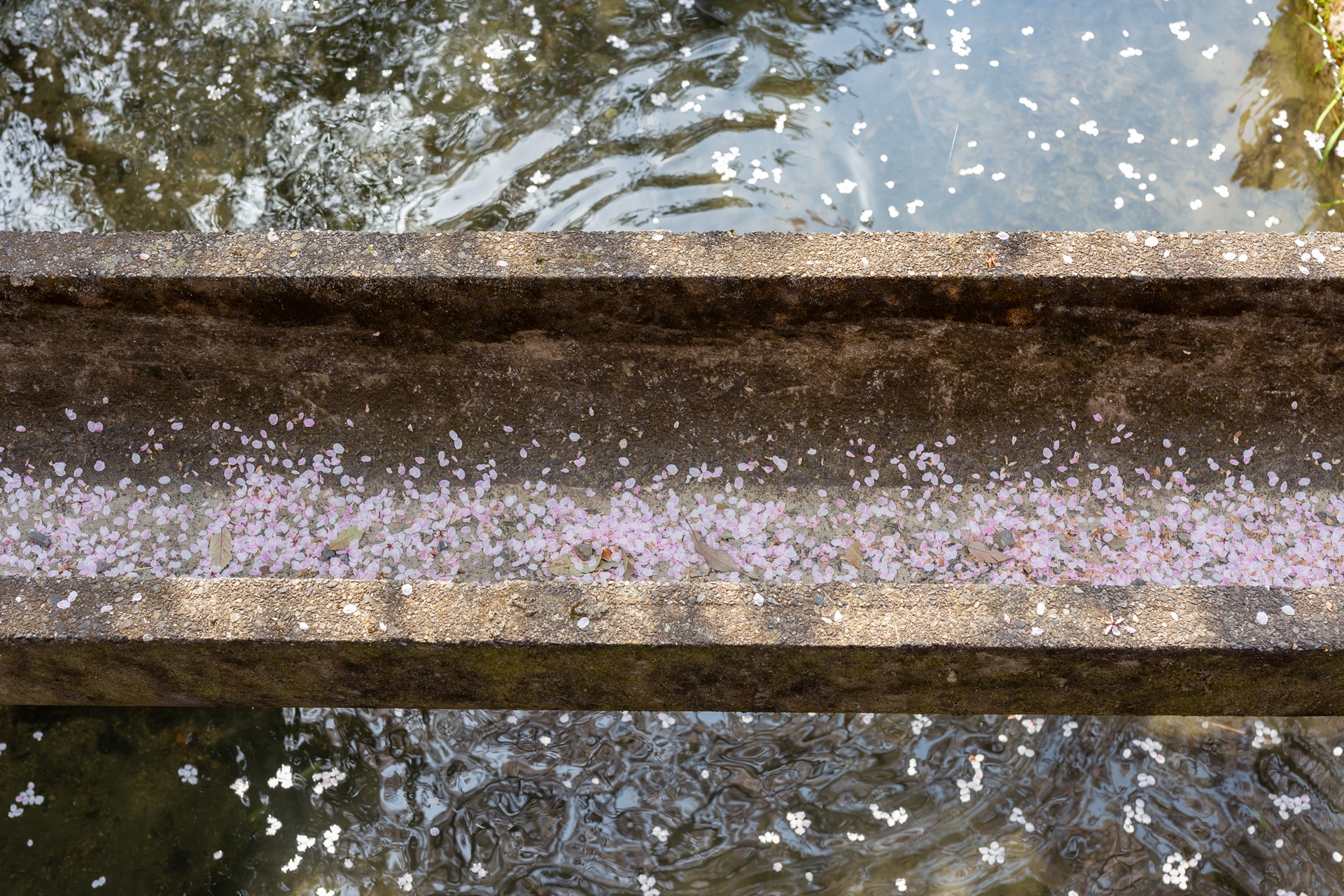 철학의 길의 시작이자 끝 부분인 긴가쿠지 인근의 수로에는 지금껏 떨어진 벚꽃 잎이 모여 있습니다.