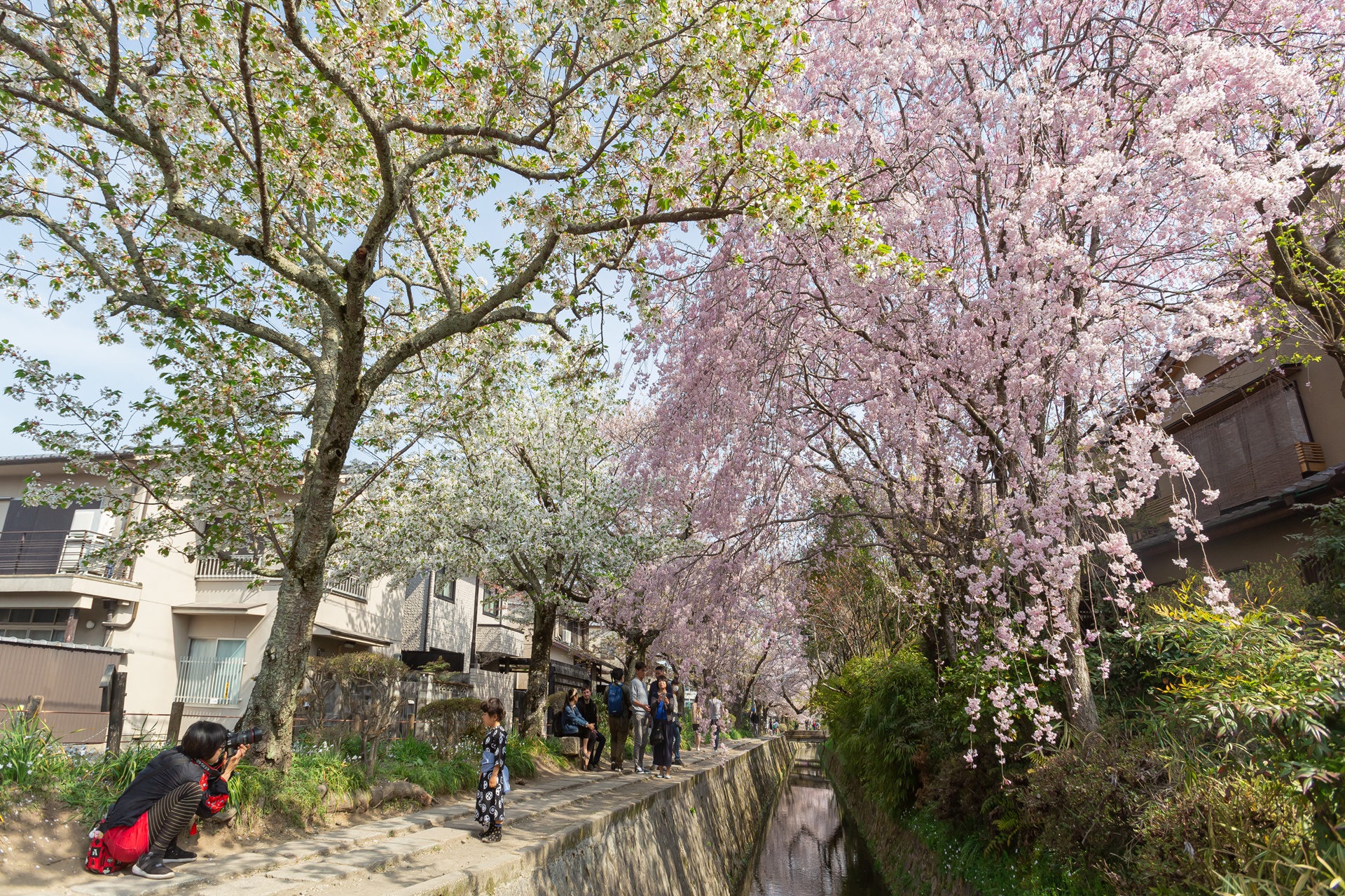 교토 철학의 길의 멋진 풍경과 이를 담는 사람들
