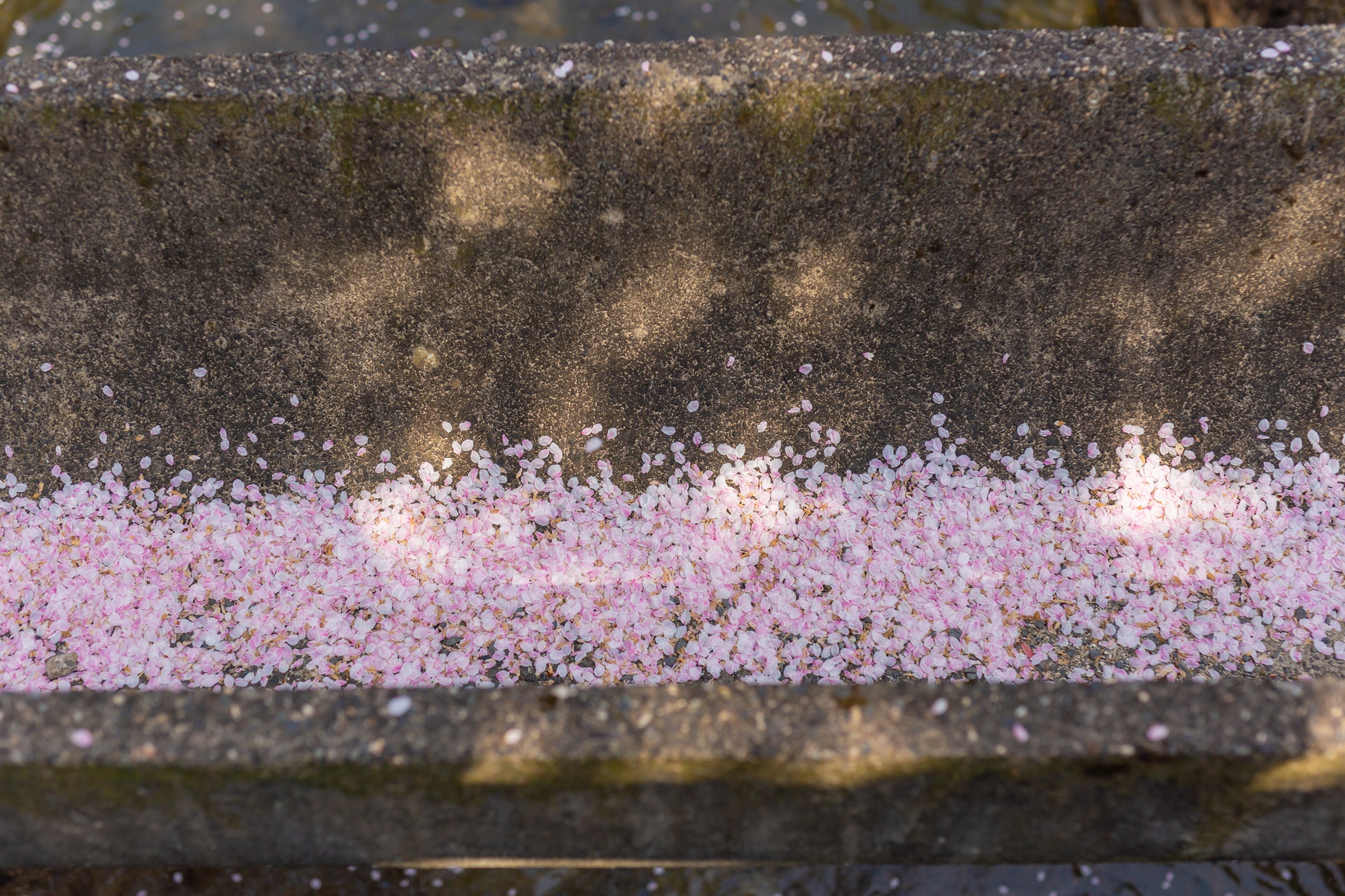 철학의 길의 시작이자 끝 부분인 긴가쿠지 인근의 수로에는 지금껏 떨어진 벚꽃 잎이 모여 있습니다.