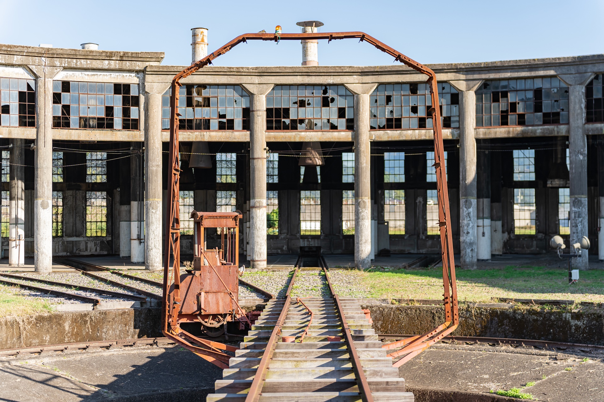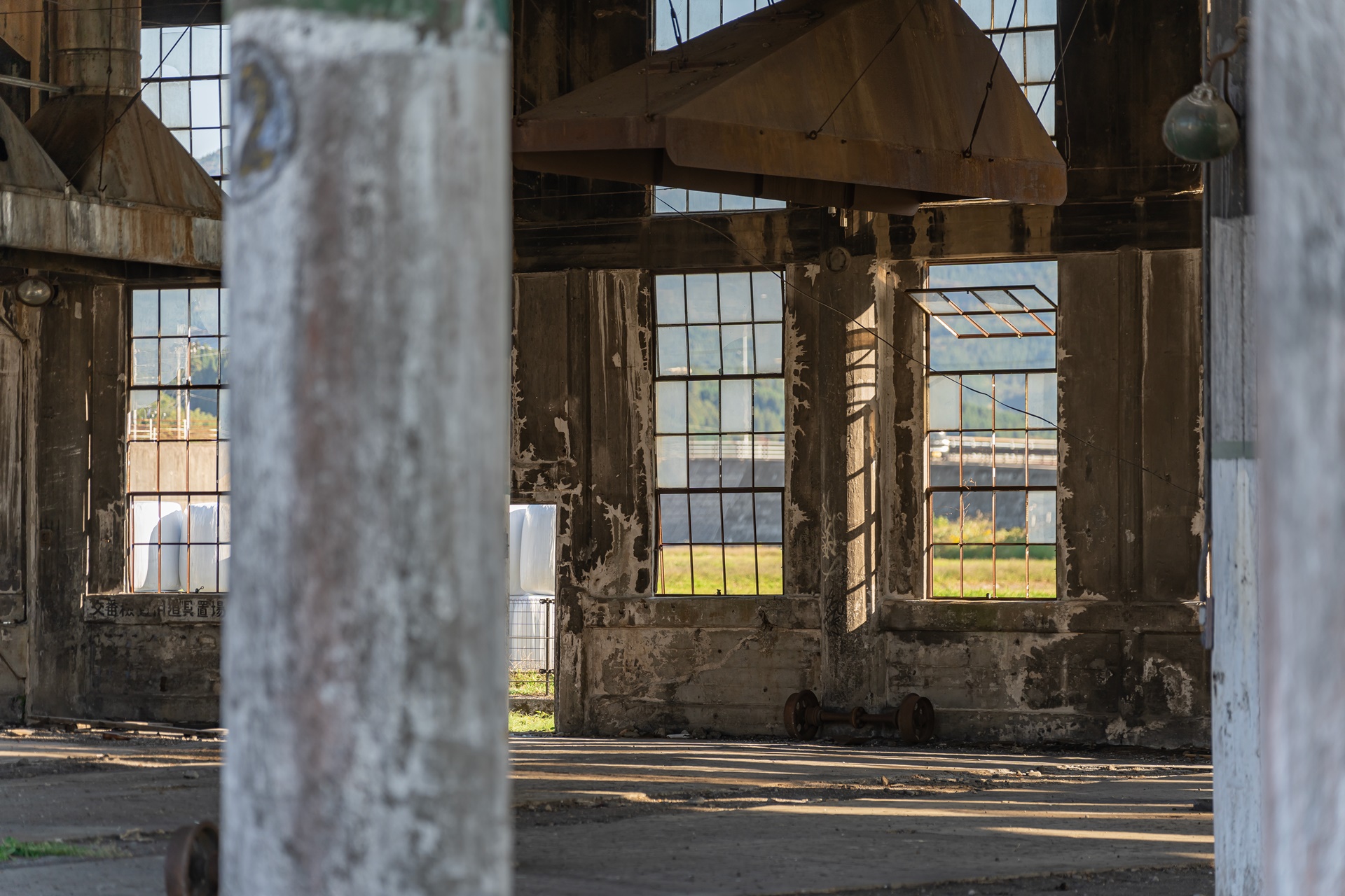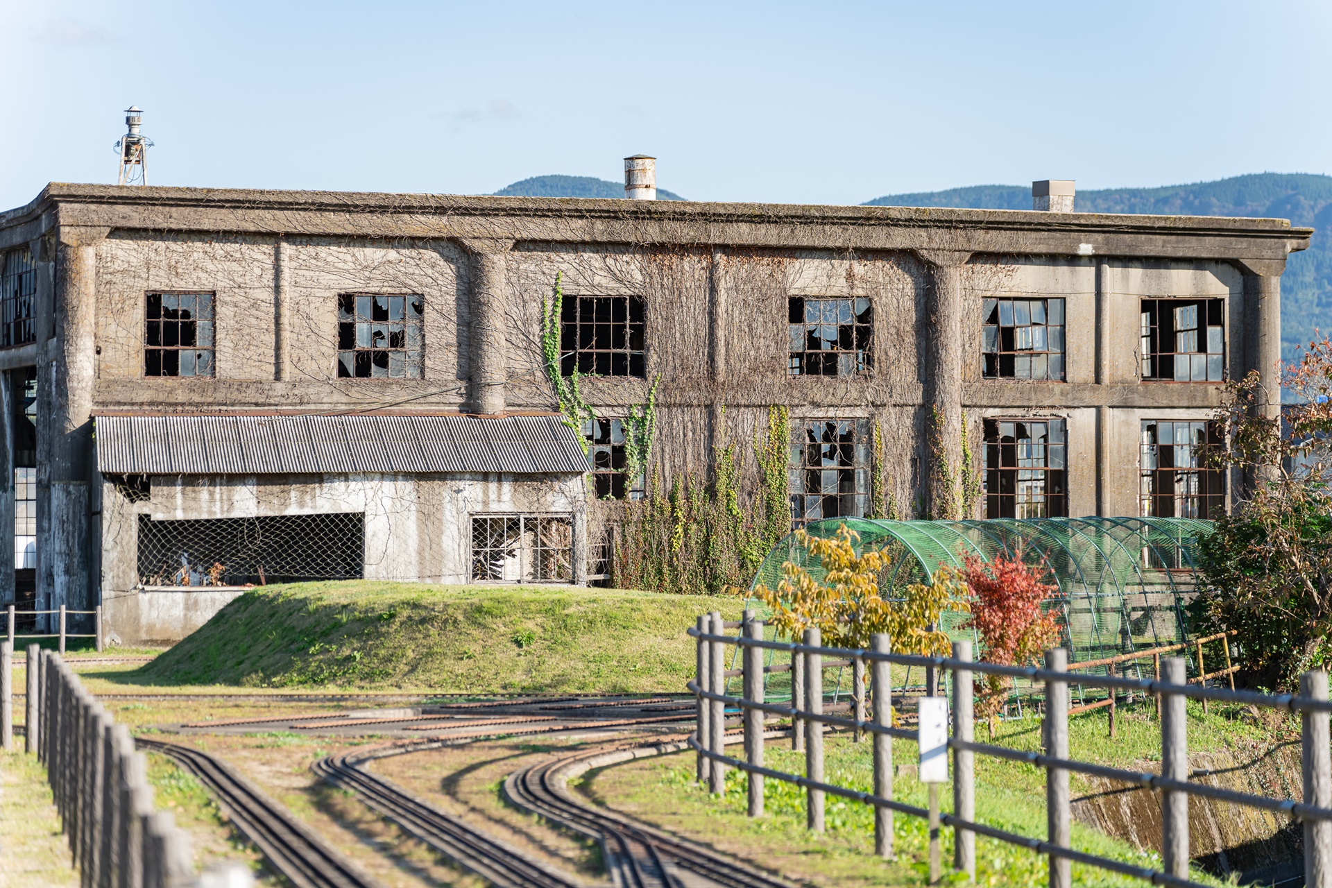 영화 포스터와 분고모리 기관고를 보면 아주 비슷한 느낌이 듭니다. 이곳은 옛 분고모리역의 증기 기관차의 선현 기관고로 사용하던 공간으로 열차를 보관하던 창고 같은 곳으로 가운데 원형으로 파여진 홈 위의 레일이 회전을 하여 각 창고로 열차를 넣는 역할을 하던 곳 입니다. 건물은 폐허로 남아 있는데 태평양 전쟁 당시 미군 전투기의 폭격을 맞아서 그렇고 전쟁의 참상을 알리고자 하며 남겨두고 있는데 전쟁의 가해자가 피해자 코스프레를 하고 있는 느낌이 강합니다. 피해자가 사과하지 않는 가해자를 용서하겠다는 말도 안되는 생각을 가진 사람도 있어서 이런 피해자 코스프레가 더욱 정당화 되고 있는 것 같아 안타깝습니다.
