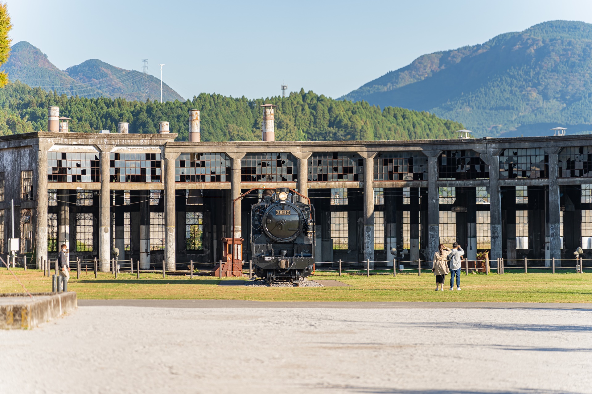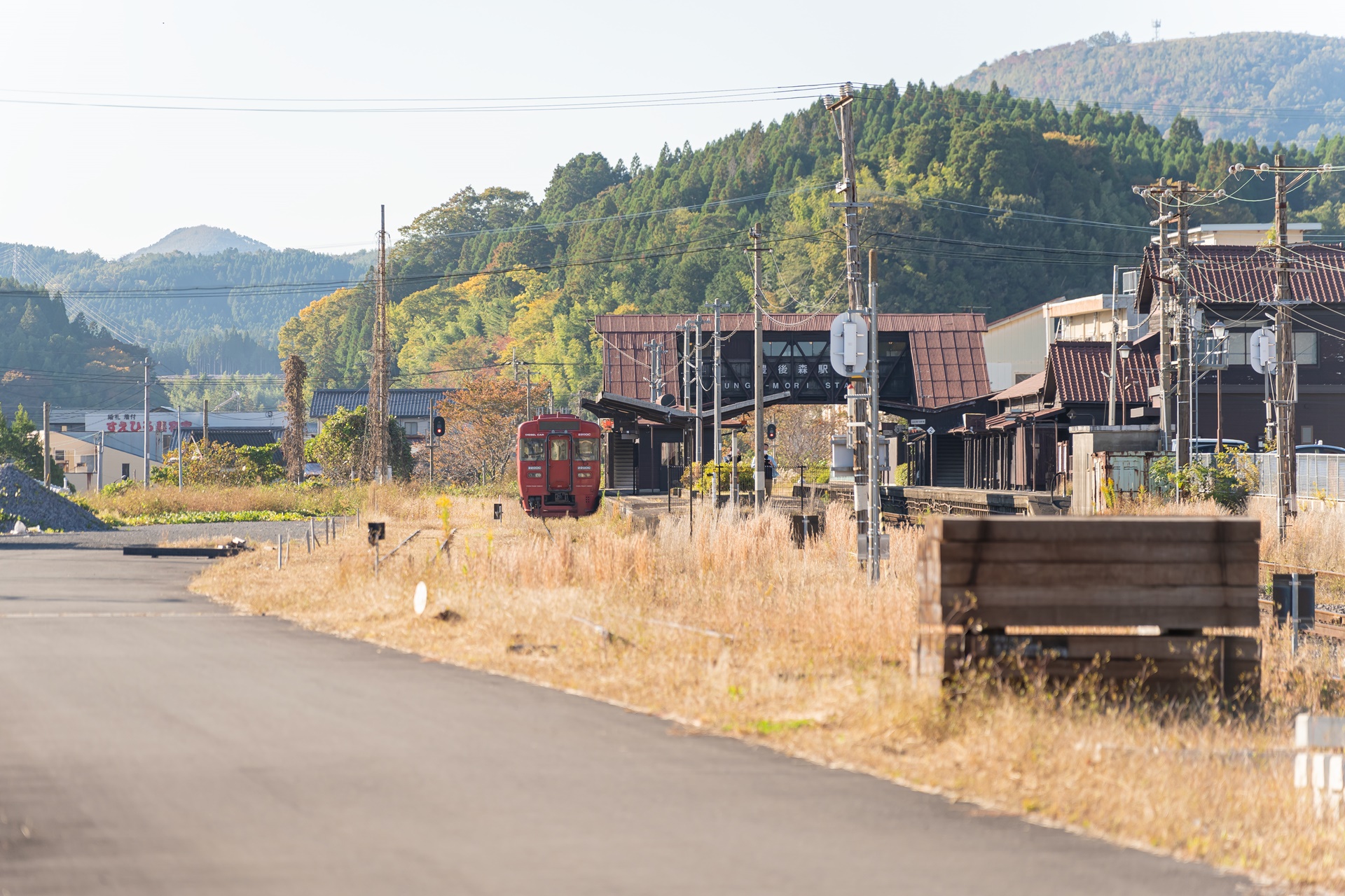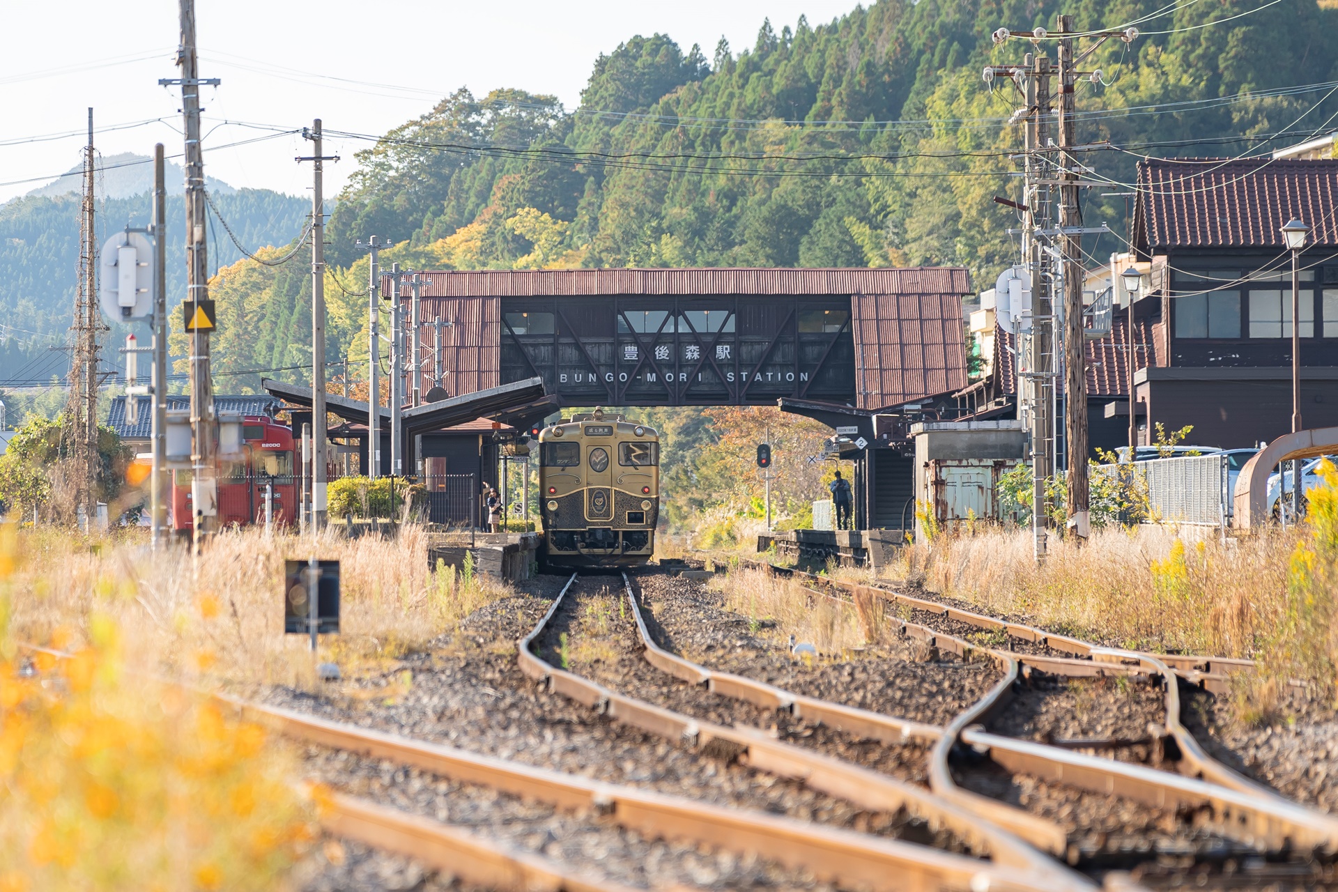 스즈메의 문단속 배경지이기 전에 이곳은 후쿠오카와 오이타를 연결하는 철도 노선의 역인 분고모리역(豊後森駅) 이 있으며 이로 인해 이곳에서 규슈의 수 많은 관광열차를 바로 옆에서 볼 수 있는 곳이기도 합니다.