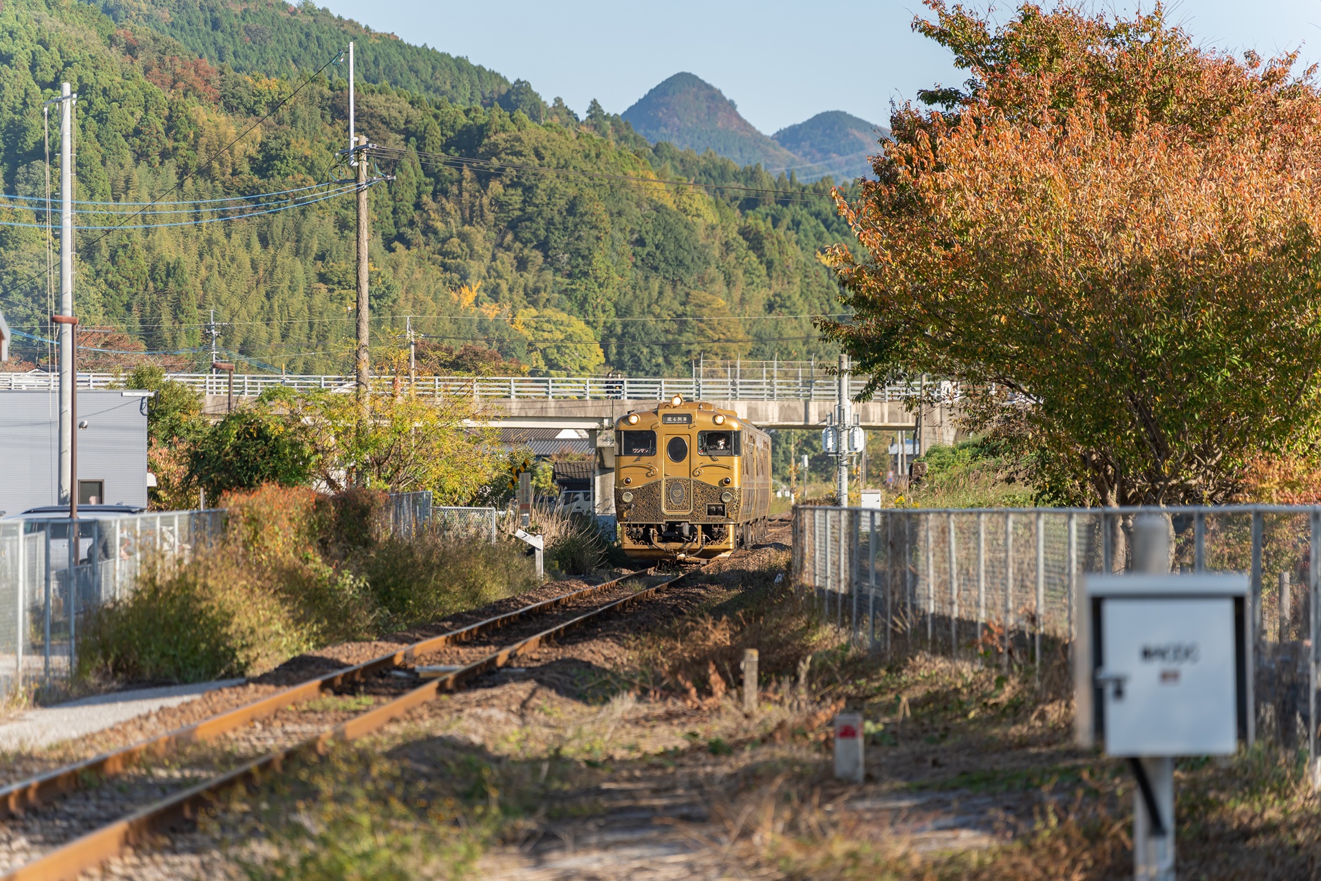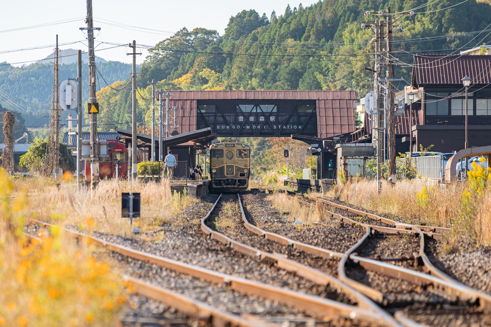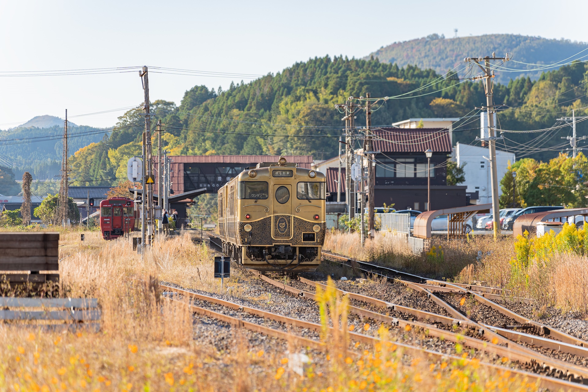 스즈메의 문단속 배경지이기 전에 이곳은 후쿠오카와 오이타를 연결하는 철도 노선의 역인 분고모리역(豊後森駅) 이 있으며 이로 인해 이곳에서 규슈의 수 많은 관광열차를 바로 옆에서 볼 수 있는 곳이기도 합니다.