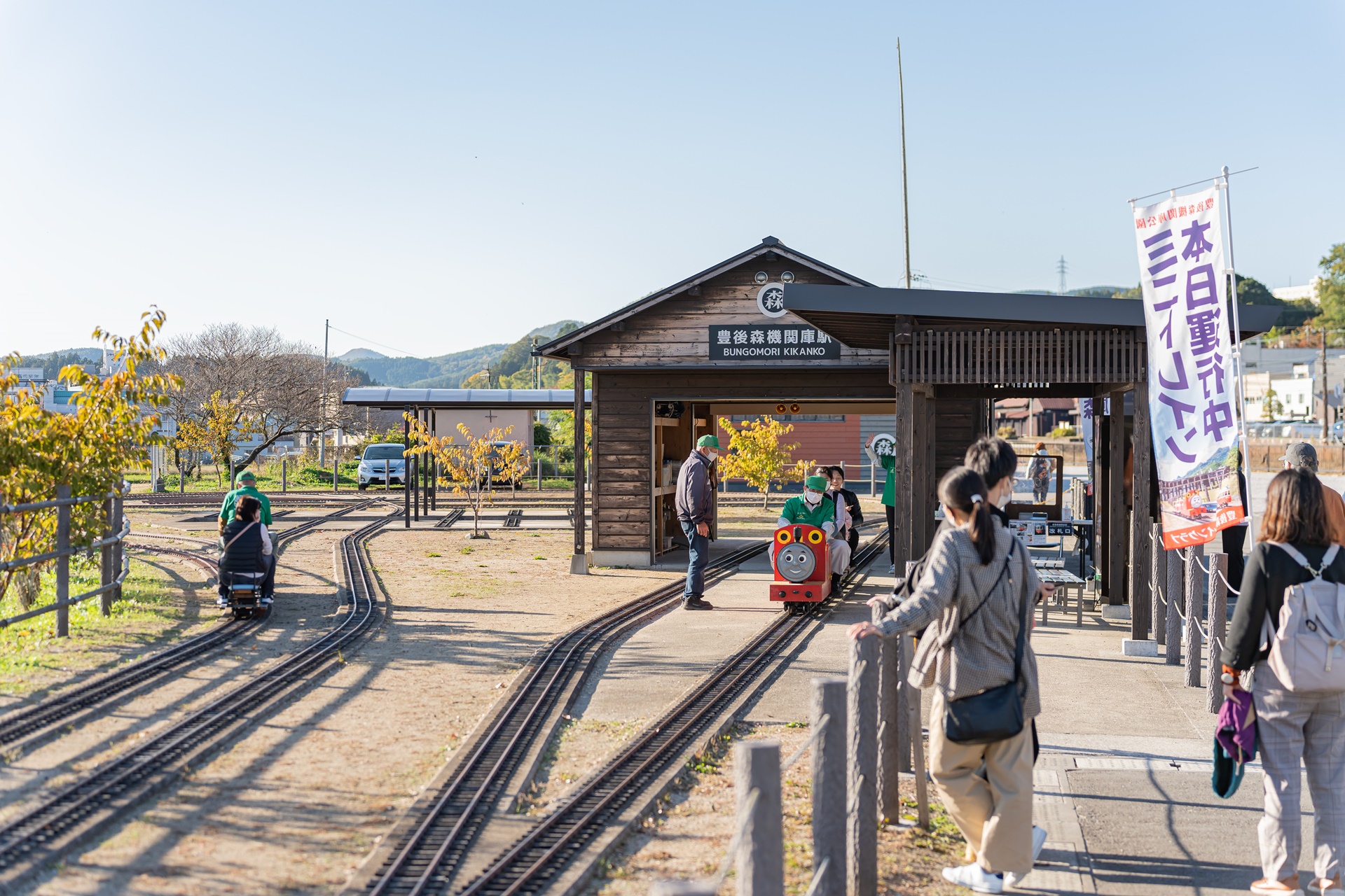 박물관 밖에는 작은 분고모리 기관차 역과 미니레일이 깔려 있어