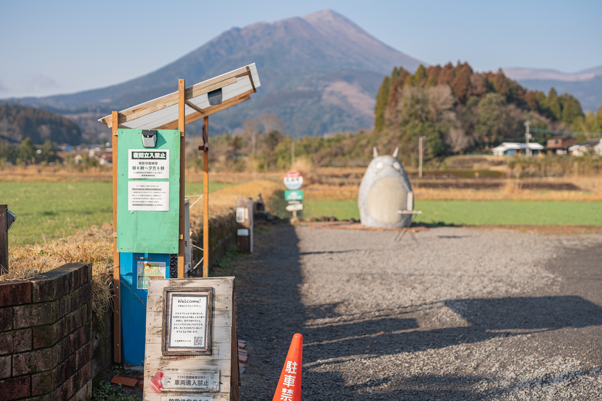 토토로 버스 정류장의 입구, 멀리 다카치호 미네 산과 토토로가 살짝 보입니다.
