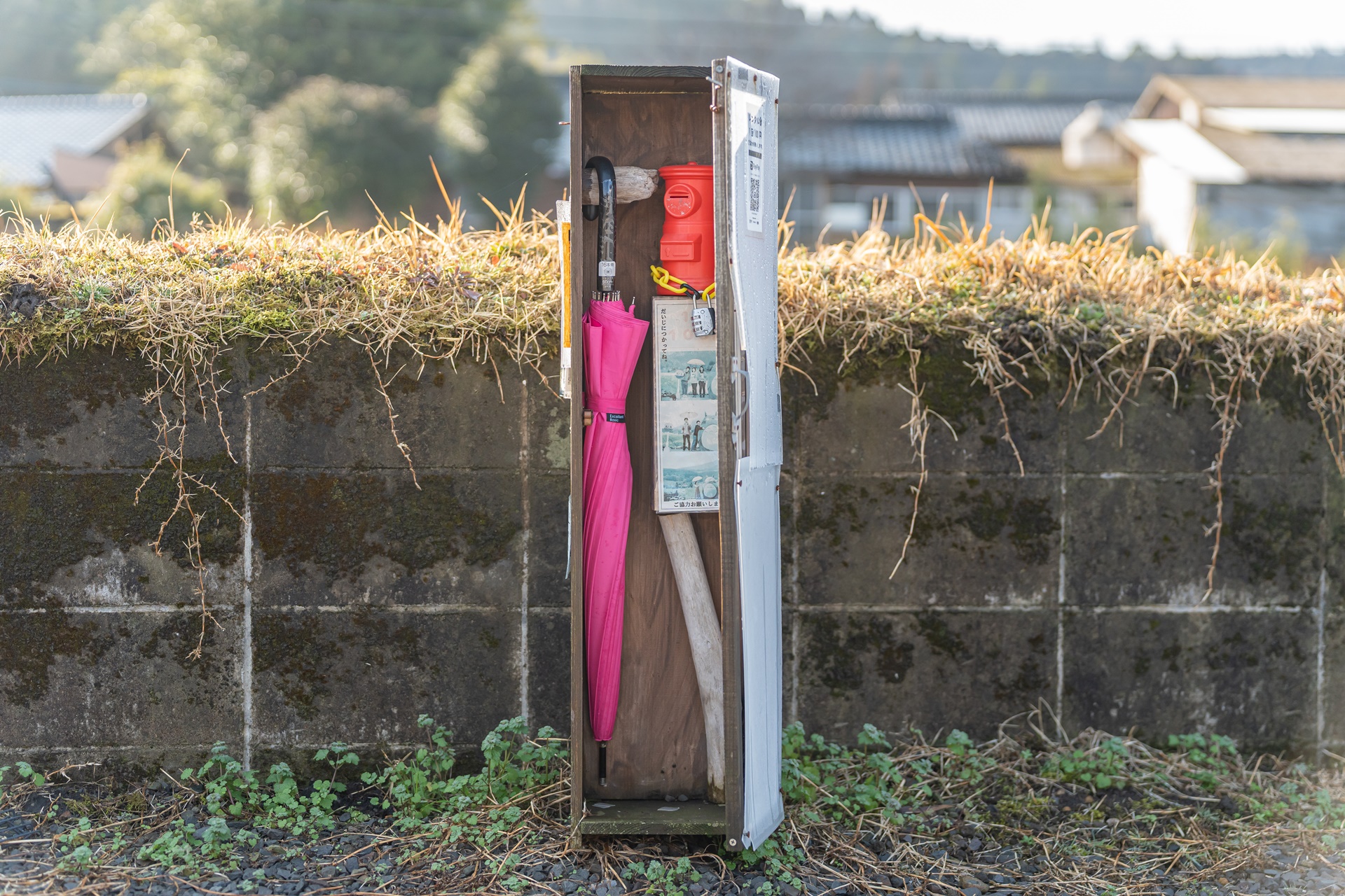 그 옆에 나무 통을 뭔가 하고 봤더니 우산 대여함이였으며 100엔의 대여료가 발생하였습니다.
