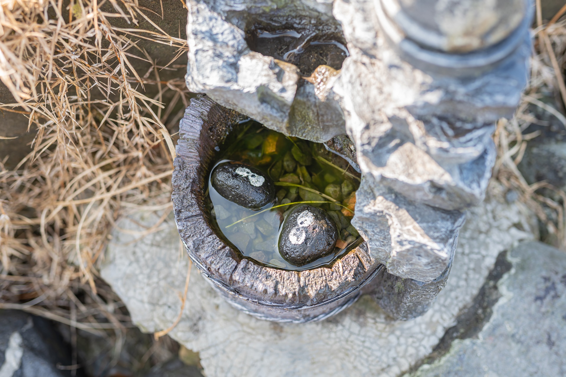 왼쪽에는 토토로의 먼지 요정이 그려진 부적 돌을 판매하고 오른 쪽에는 동구리(도토리) 운세 뽑기로 도토리 안에 자신의 운이 적혀 있는 종이가 들어 있습니다.