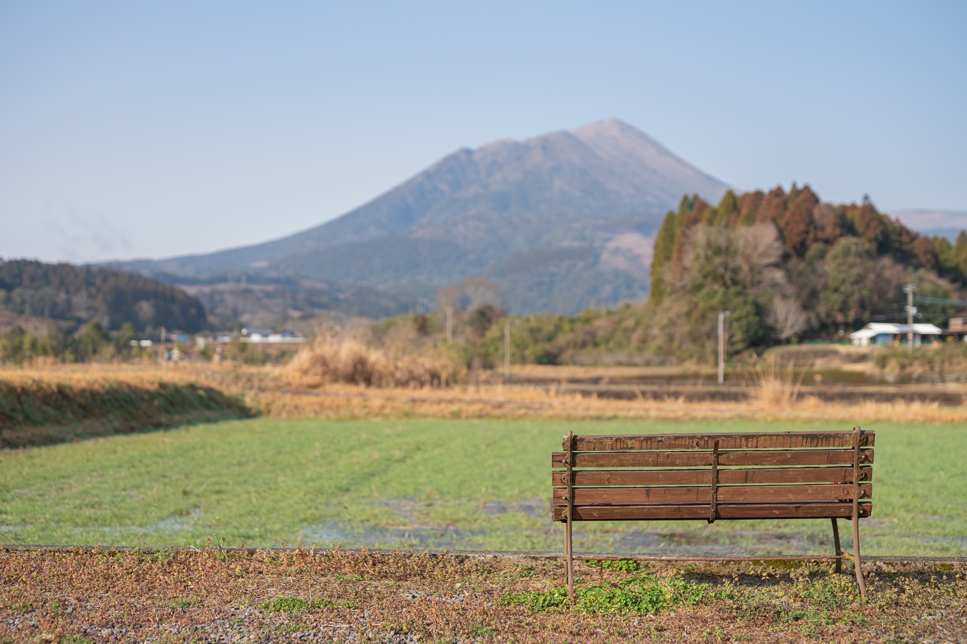 토토로 버스 정류장 옆에는 다카치호 미네 산을 바라보며 쉴 수 있는 작은 벤치도 마련되어 있습니다.