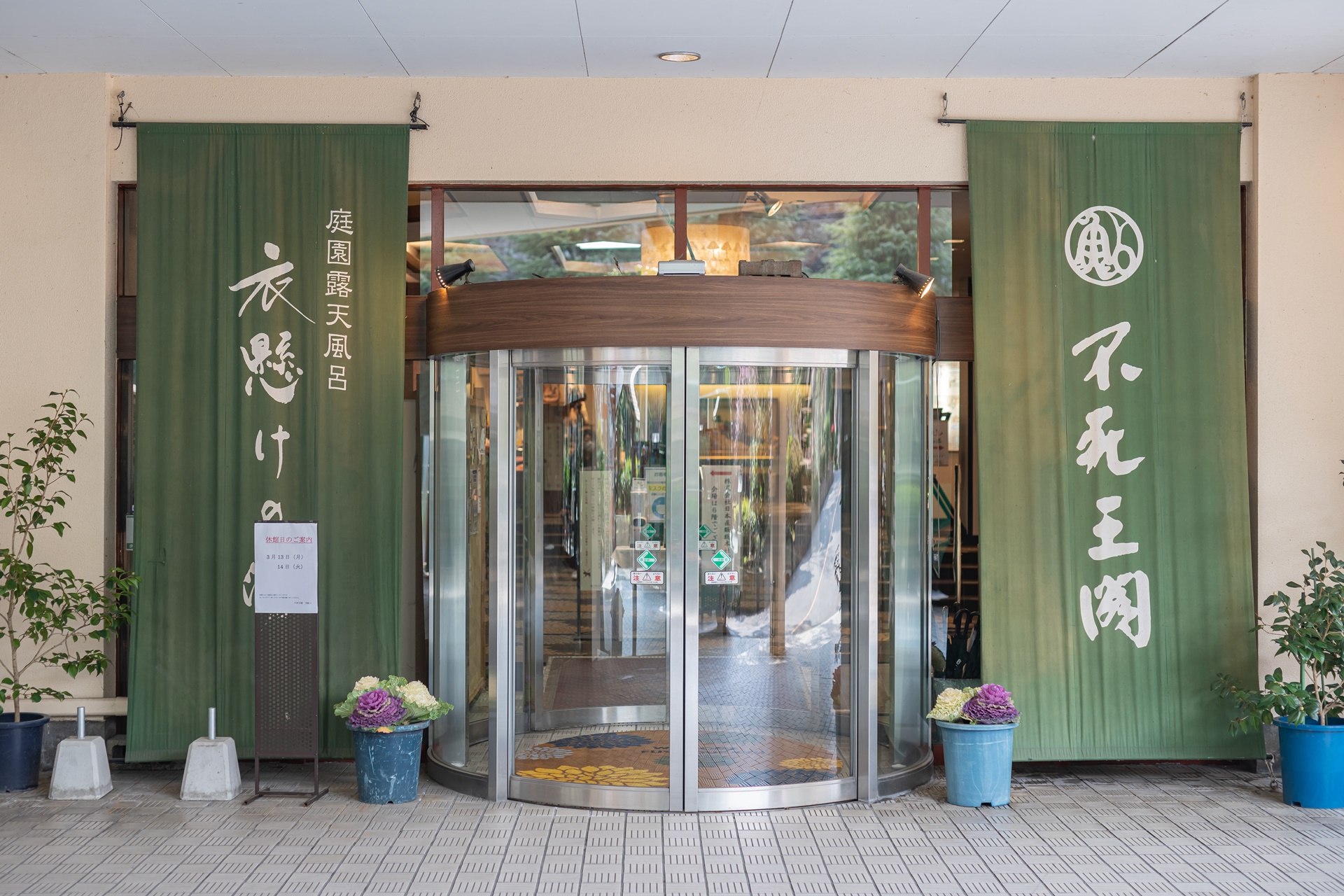 오사카 온천료칸 후시오카쿠(不死王閣), 오사카 우메다에서 20~30분 정도 걸리는 이케다시(池田市)의 천연 자연온천 료칸입니다.