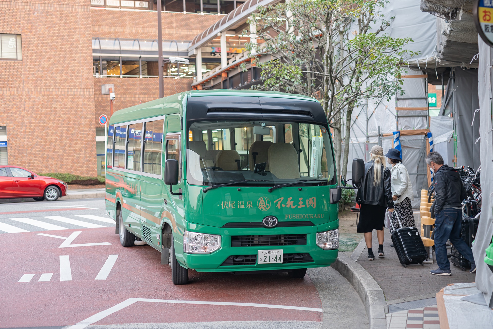 이케다 역 주변을 둘러보고 후시오카쿠 온천료칸 셔틀버스 정류장으로 왔습니다.