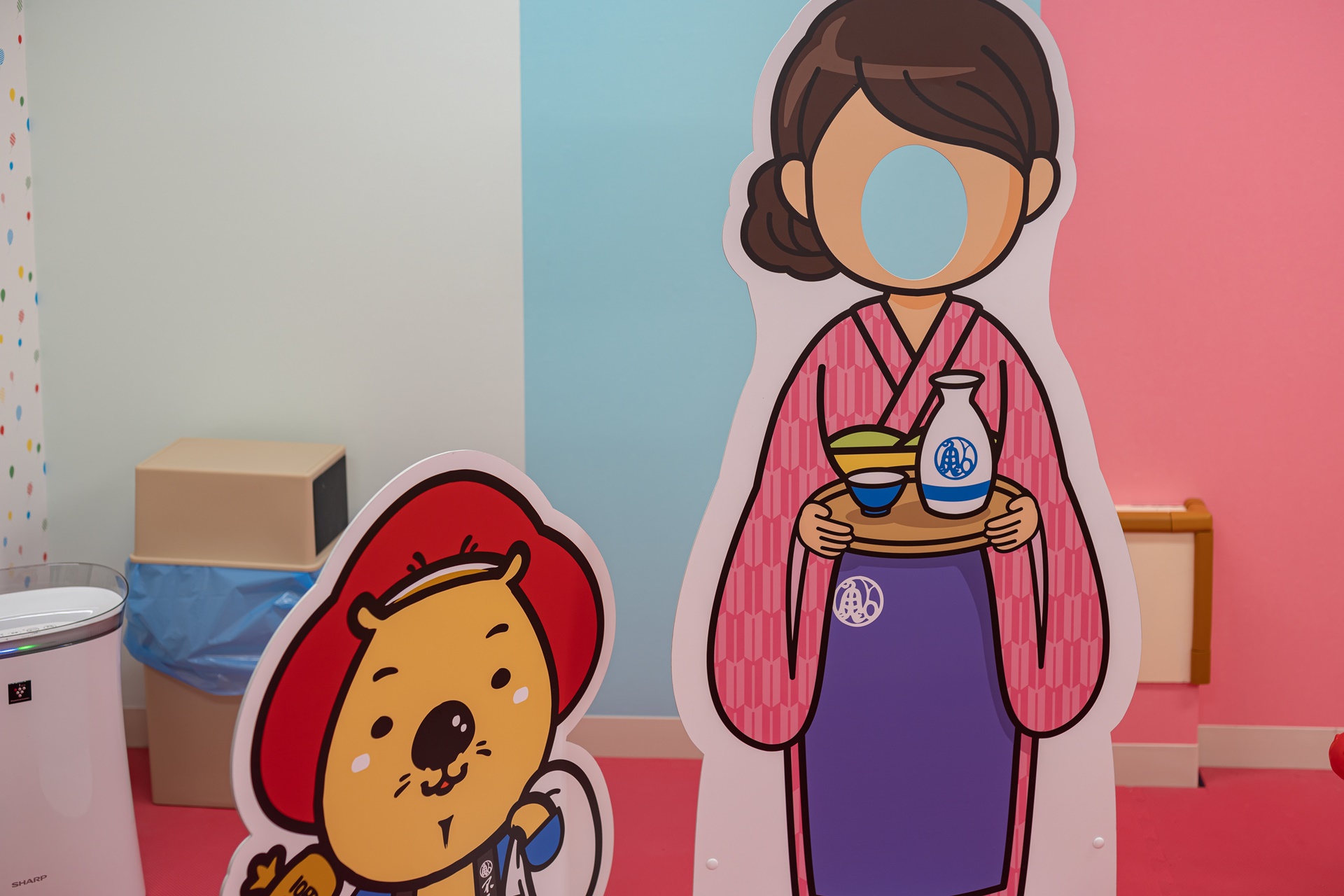 키즈룸에는 료칸의 오카미 판낼과 아재 같은 느낌의 동물 판넬이 있었습니다.