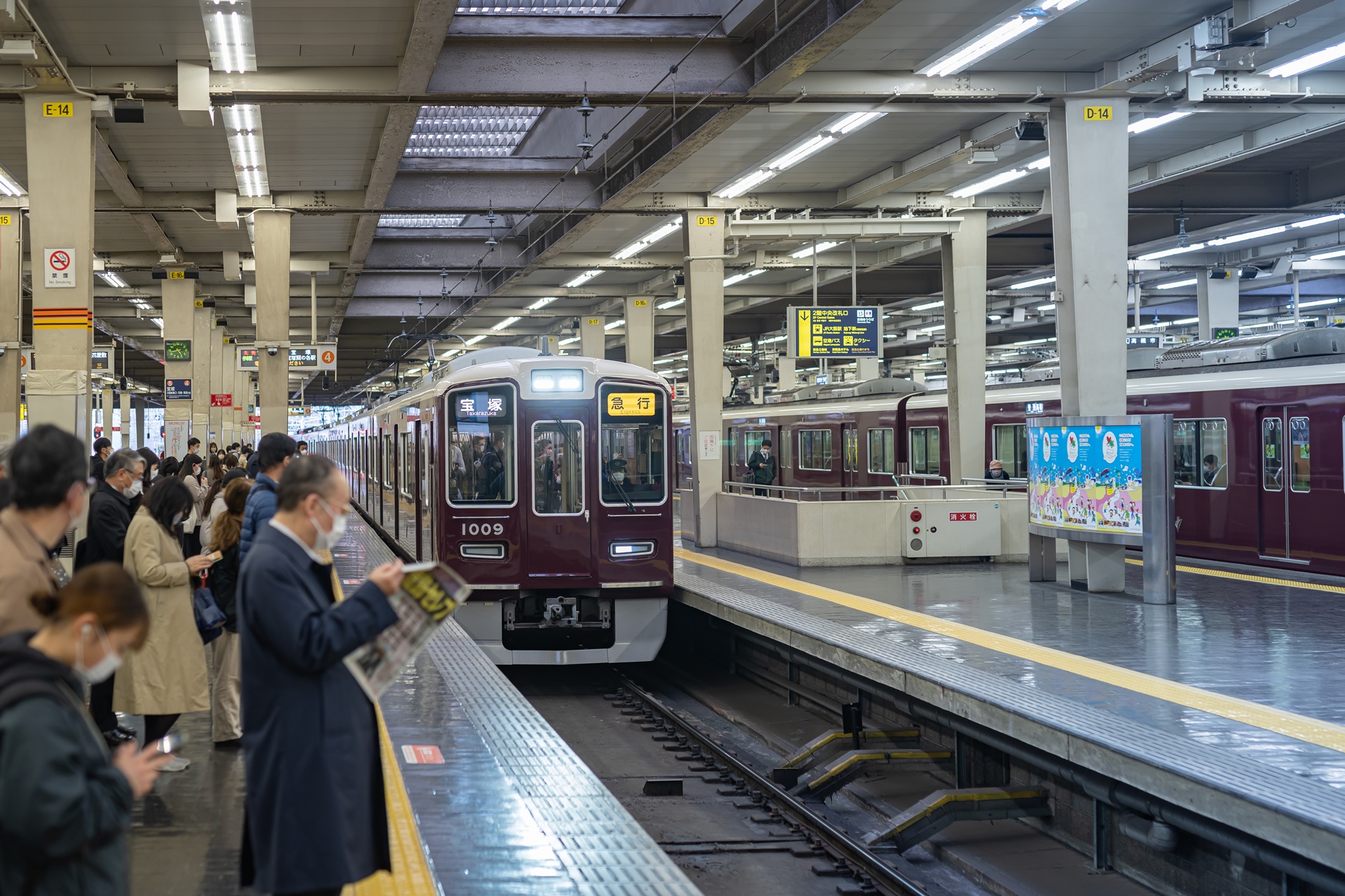 한큐의 모든 전철이 모이는 오사카 우메다역, 이곳에서는 교토, 고베등 다양한 지역으로 이동을 할 수 있습니다.