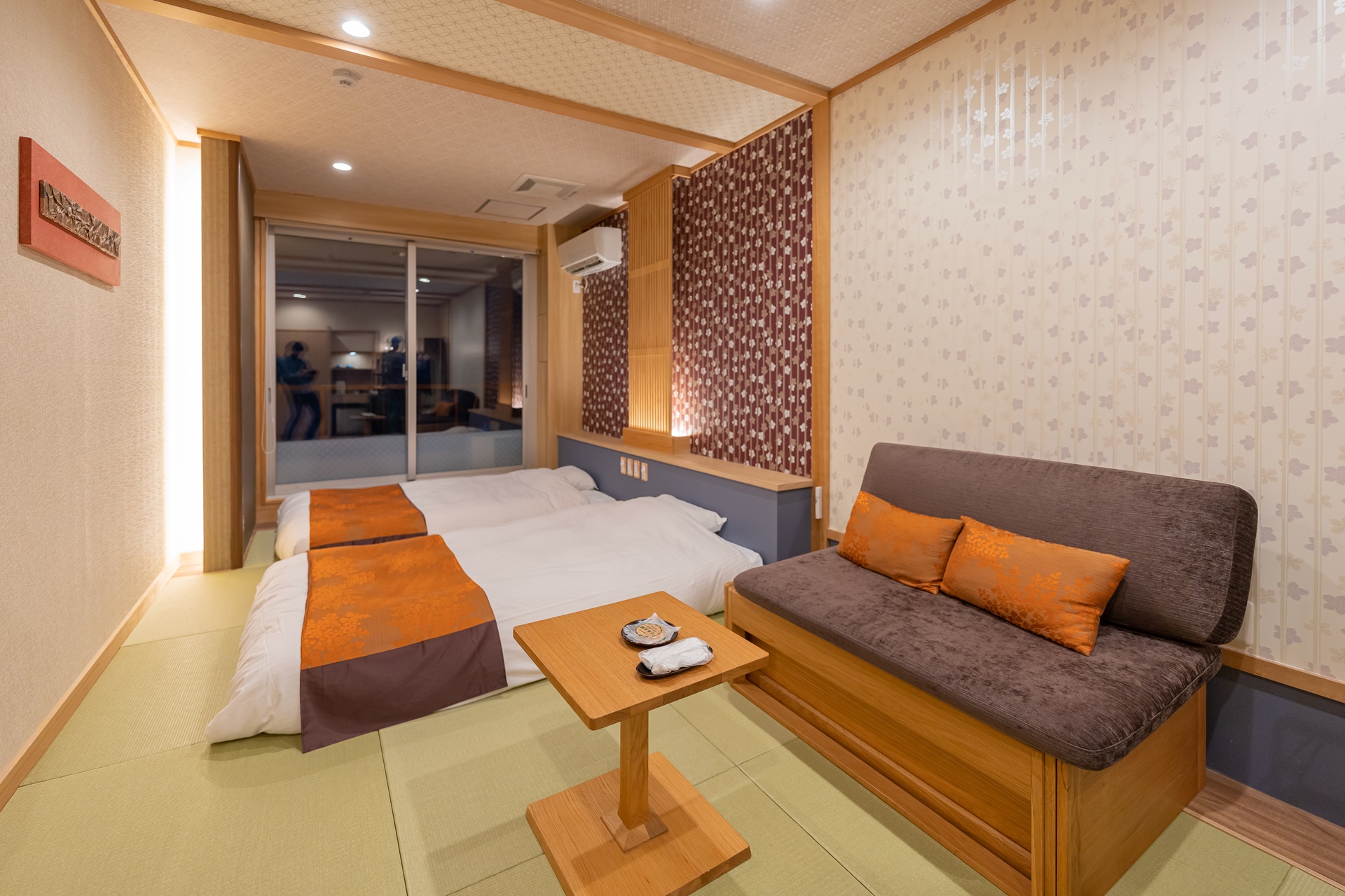 긴 직사각형 모양의 후시오카쿠 온천료칸의 객실