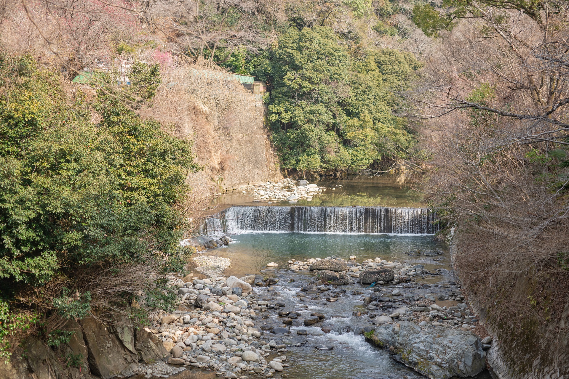 요노가와 강에는 작은 폭포가 있으며 물 소리를 들으며 여유롭게 시간을 보내기 좋습니다.
