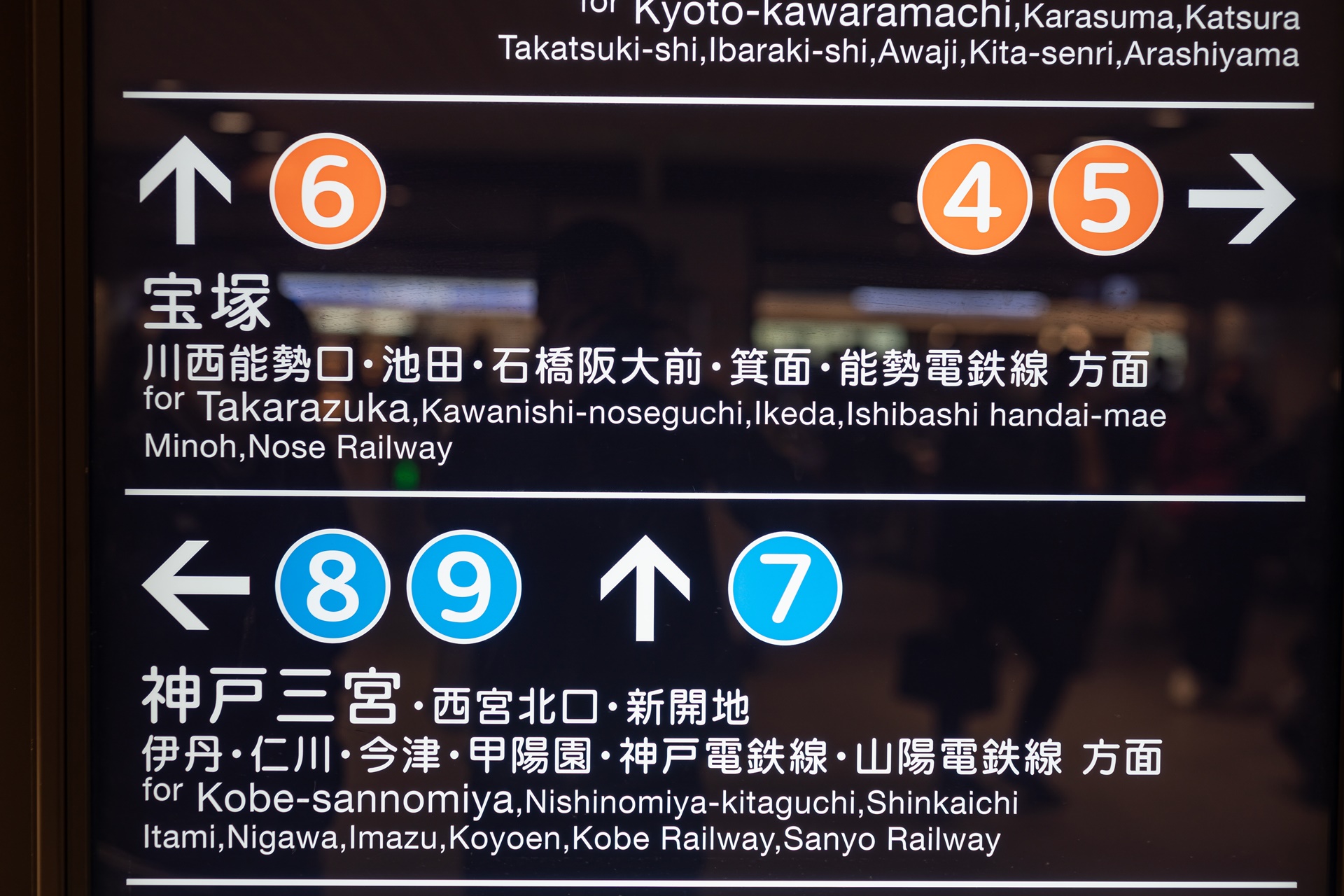 이케다역으로 갈 수 있는 한큐 오사카 우메다역의 다카라즈카노선은 4,5,6 번 플렛홈에서 이용할 수 있으며 보통 4,5번 플렛홈에서 많이 탑니다.