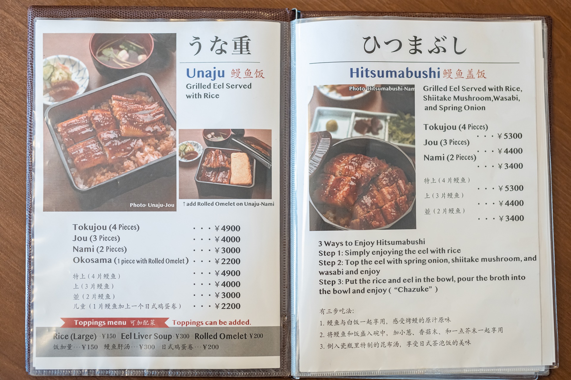 장어 정식, 우나주, 히츠마부시, 장어덮밥 등 다양한 장어요리가 있었고