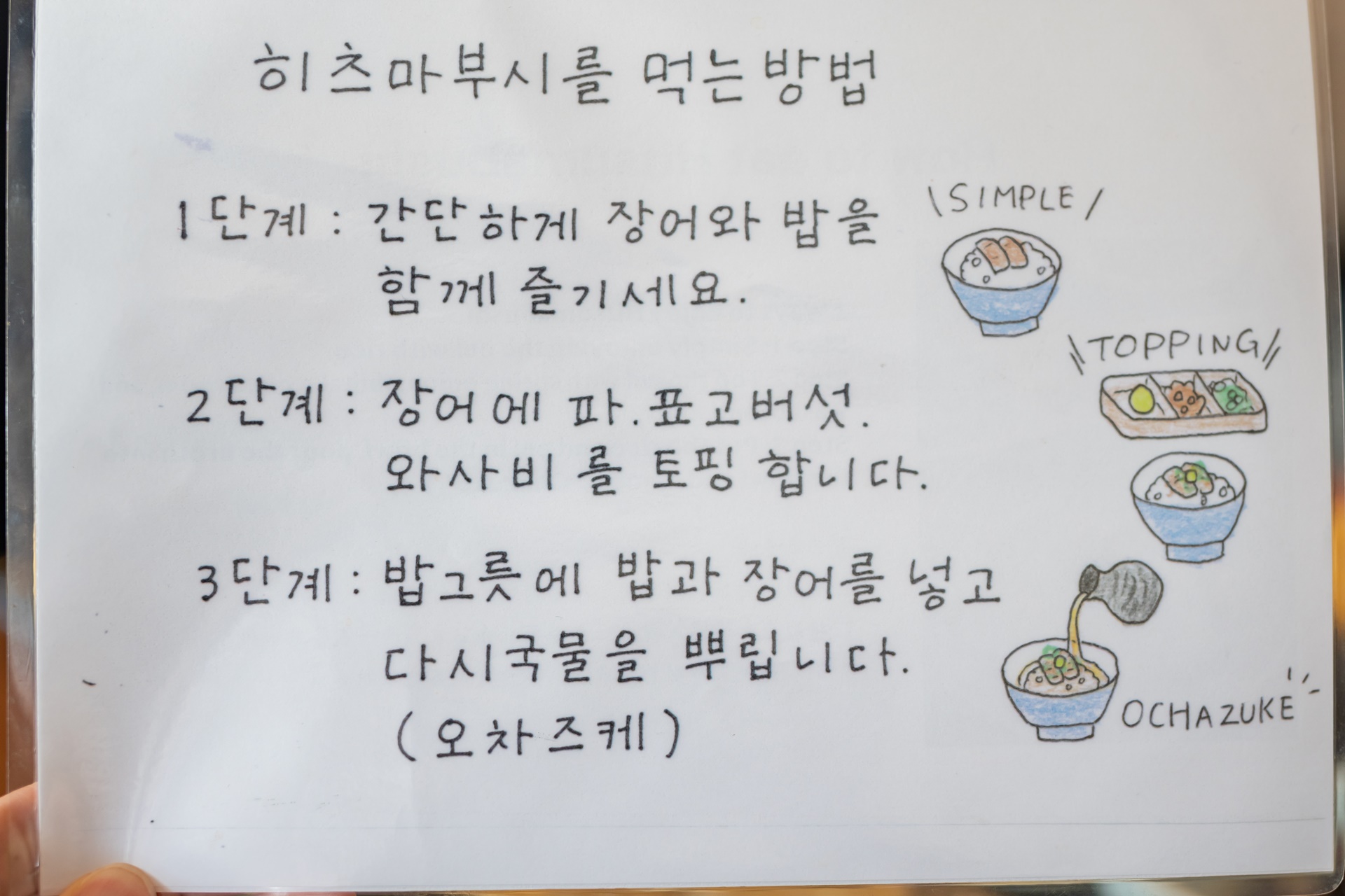코로나 전에는 일본에 와서 히츠마부시를 먹으면 조금 비싸게 좋은 식사를 했다는 느낌이였는데 지금은 한국 물가가 너무 올라서 싸게 잘먹었다 라는 생각이 듭니다.