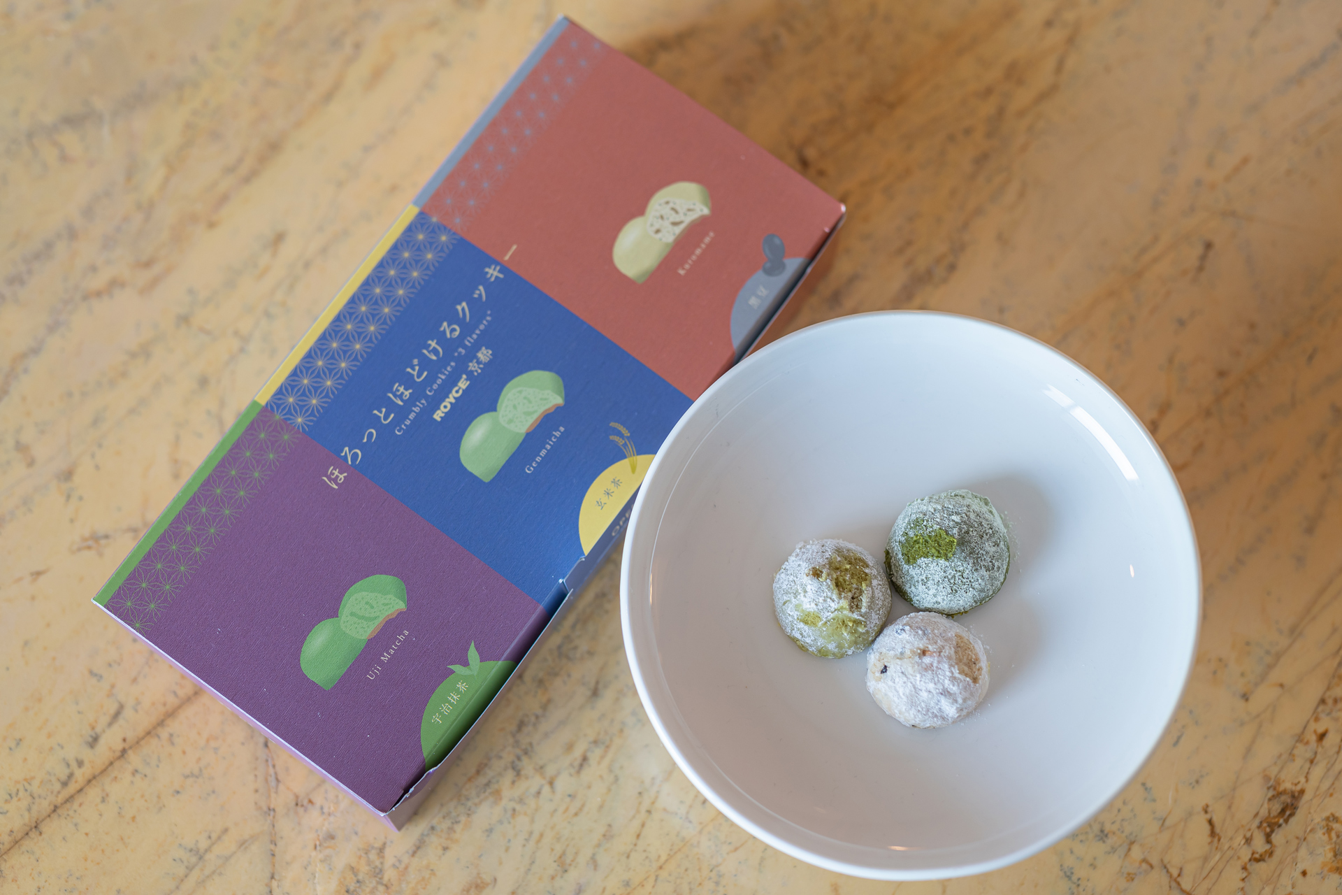 교토에서 사랑받는 우지 말차, 현미차, 검은콩을 각각 브랜드 했습니다. 입안에서 사르륵 부서지는 부드러운 식감의 한 입 사이즈 쿠키입니다. 종류별로 개별 포장이 되어 있어 좋습니다.
