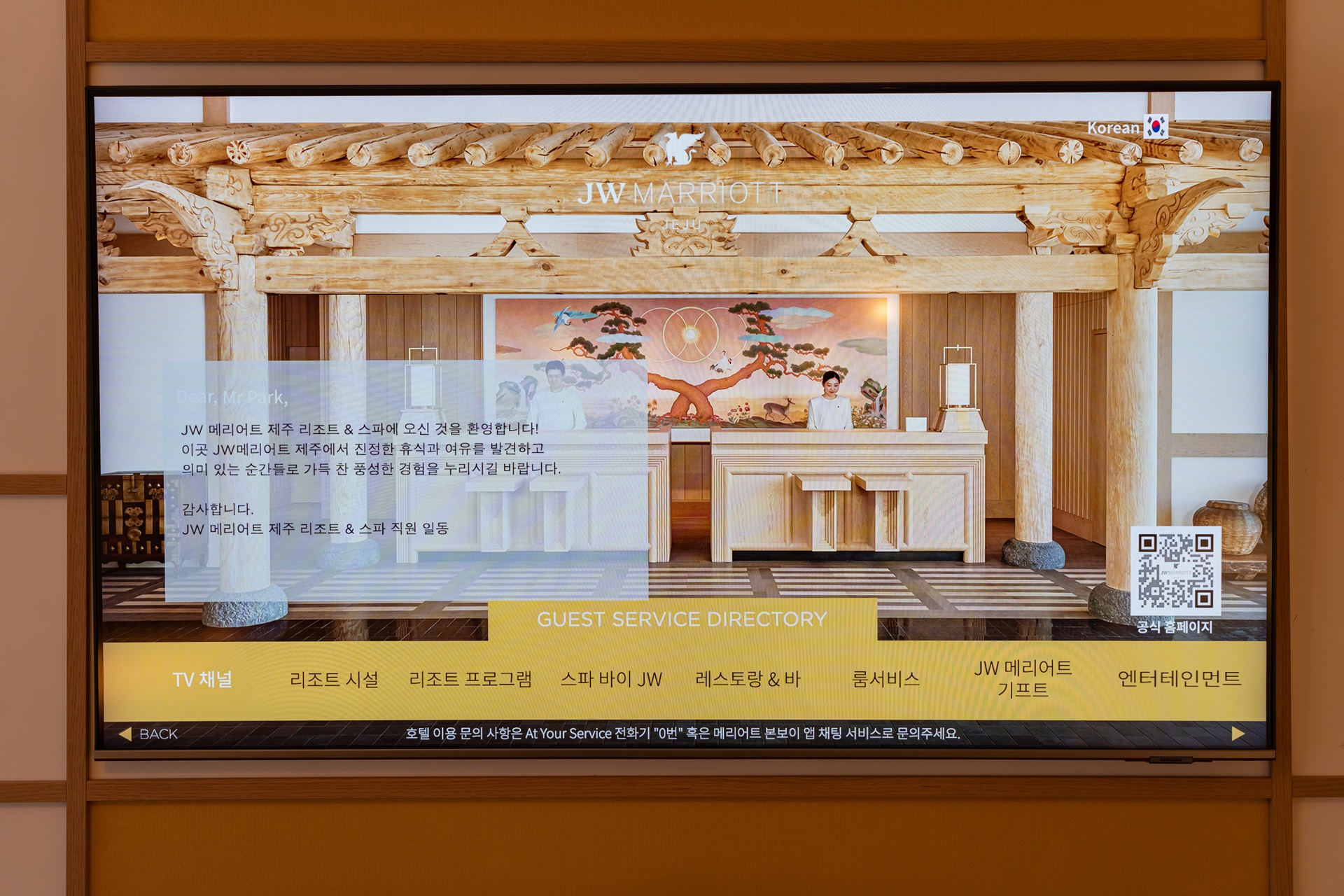 TV는 55인치 정도 되는 것 같았고 호텔의 다양한 정보를 얻을 수 있었습니다.
