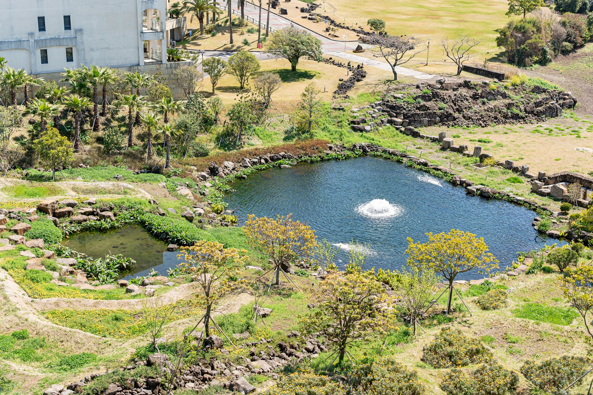아름다운 정원에서 제주 섬의 토착 문화를 흥미로운 시선으로 바라 볼 수 있도록 제주의 전통 가옥을 재현한 초가 입니다.