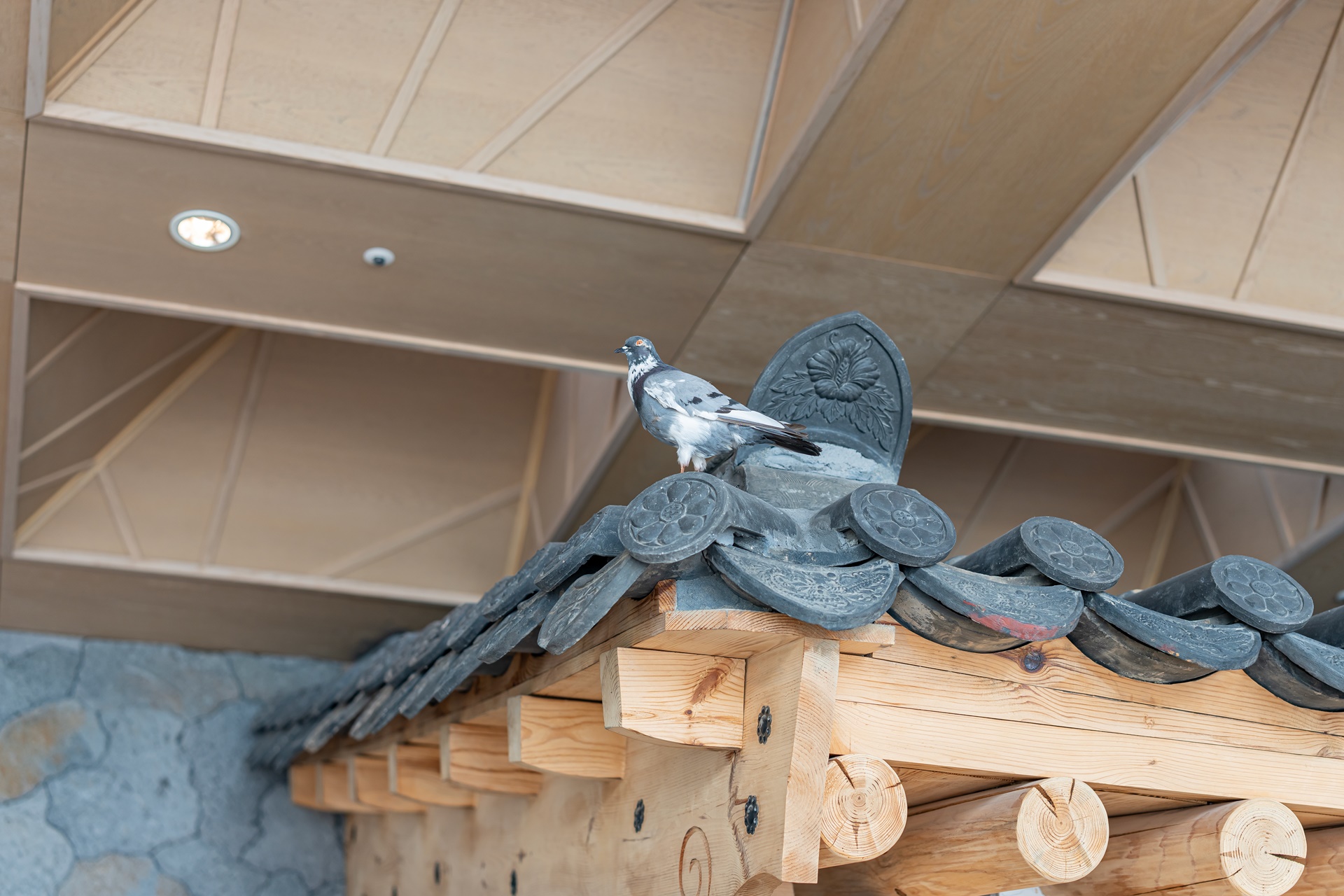2024년 1주년 기념일에 찾았을 때에는 지붕과 기와에 비둘기 박제가 있었습니다.