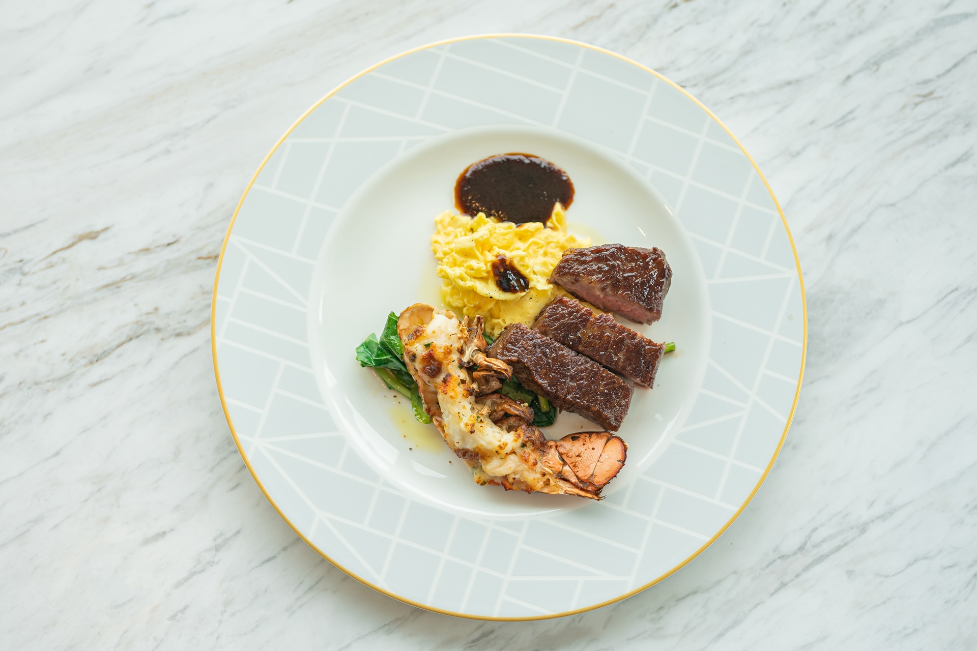 선택 메뉴중 하나인 채끝 등심과 바닷가재 스크램블 에그