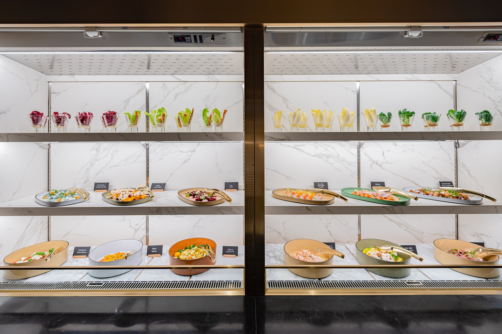 이제 JW 메리어트 제주 리조트 & 스파 조식당인 아일랜드 키친의 뷔페 메뉴를 보기 위해 자리에서 일어났습니다.