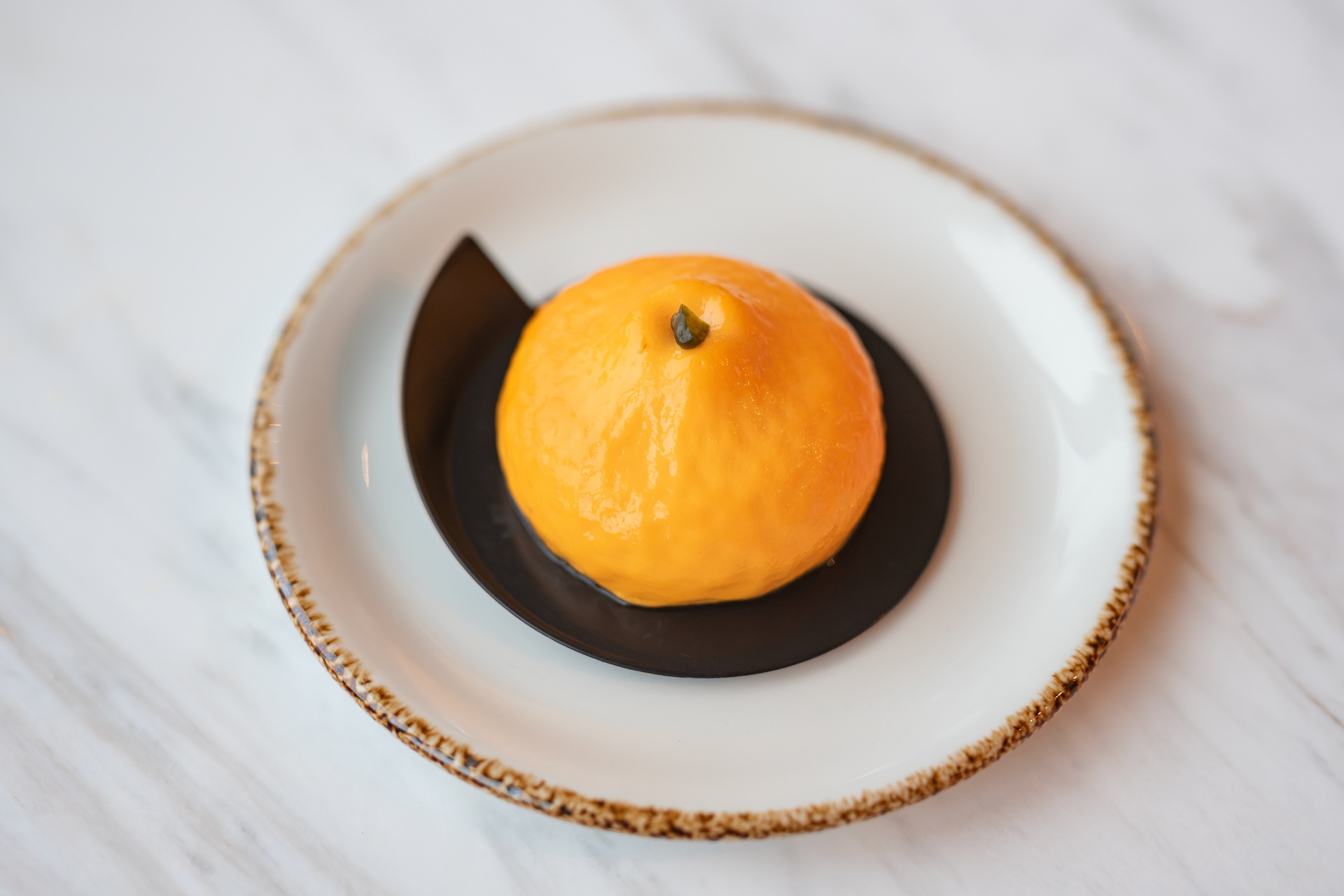 향긋한 귤이 가득들어간 젤라틴 껍질에 안은 부드러운 우유크림과 촉촉한 감귤 스폰지케이크로 정말 맛있었습니다.