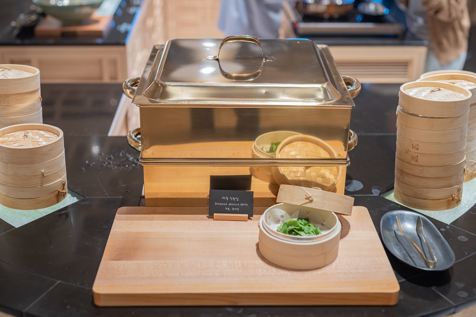 다음은 찜요리로 새우, 가리비, 전복 등 여러 찜요리들이 준비되어 있었습니다.