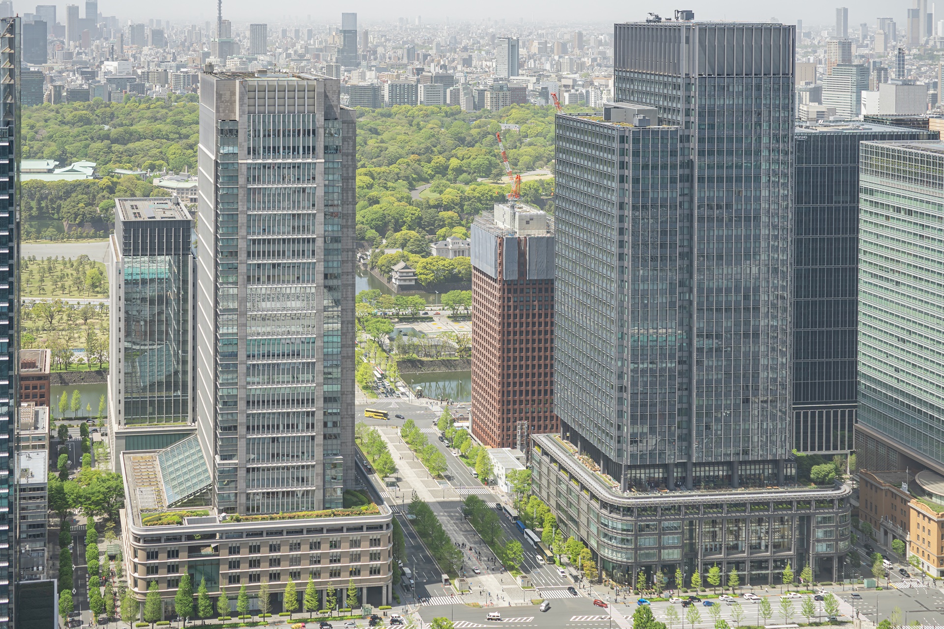 마루노우치 빌딩, 신마루노우치 빌딩, 도쿄역과 도쿄역 앞의 정원의 풍경이 아기자기하게 들어옵니다.