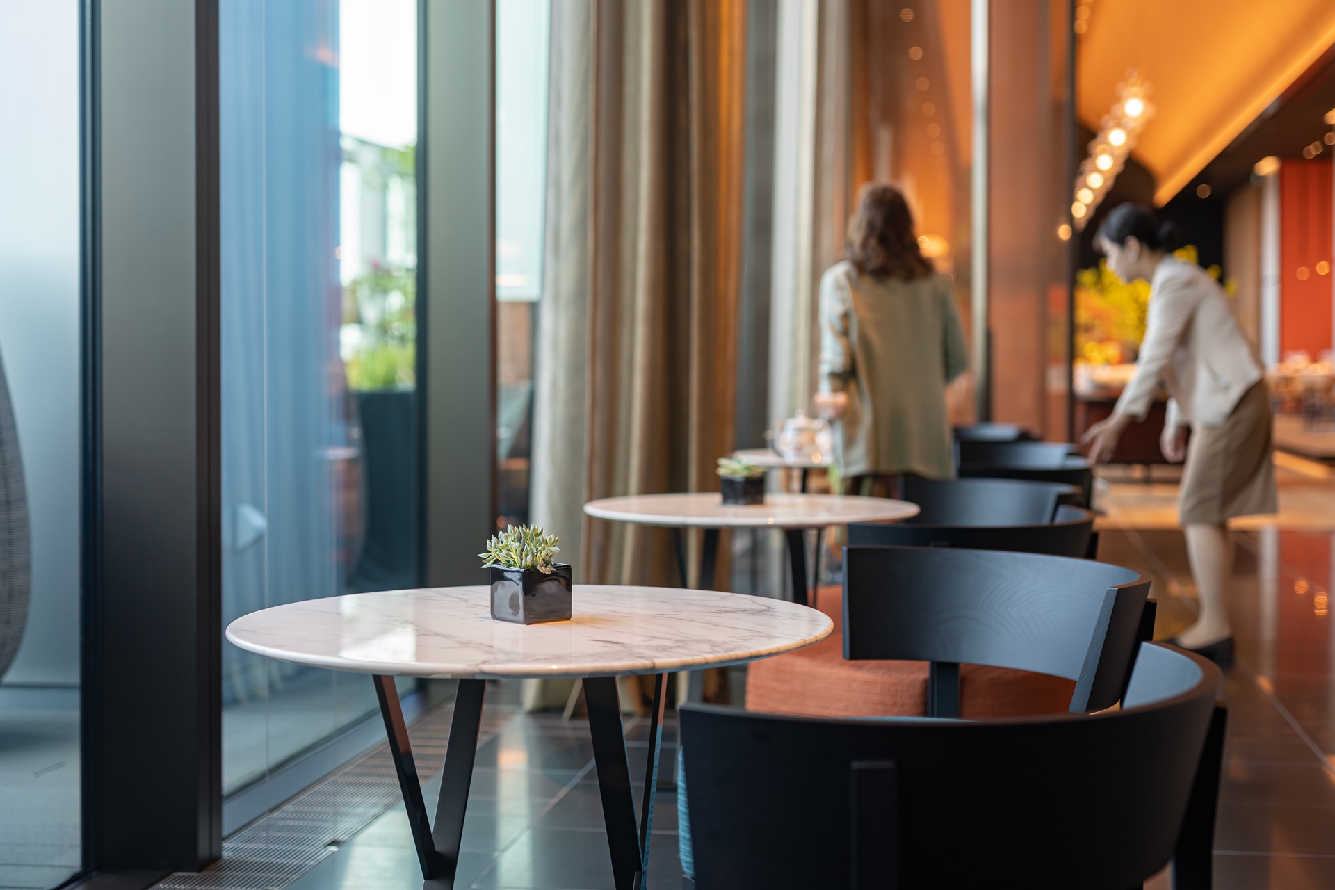 도쿄역과 마루노우치 일대의 전망을 감상할 수 있는 불가리 도쿄 호텔의 라운지 정원