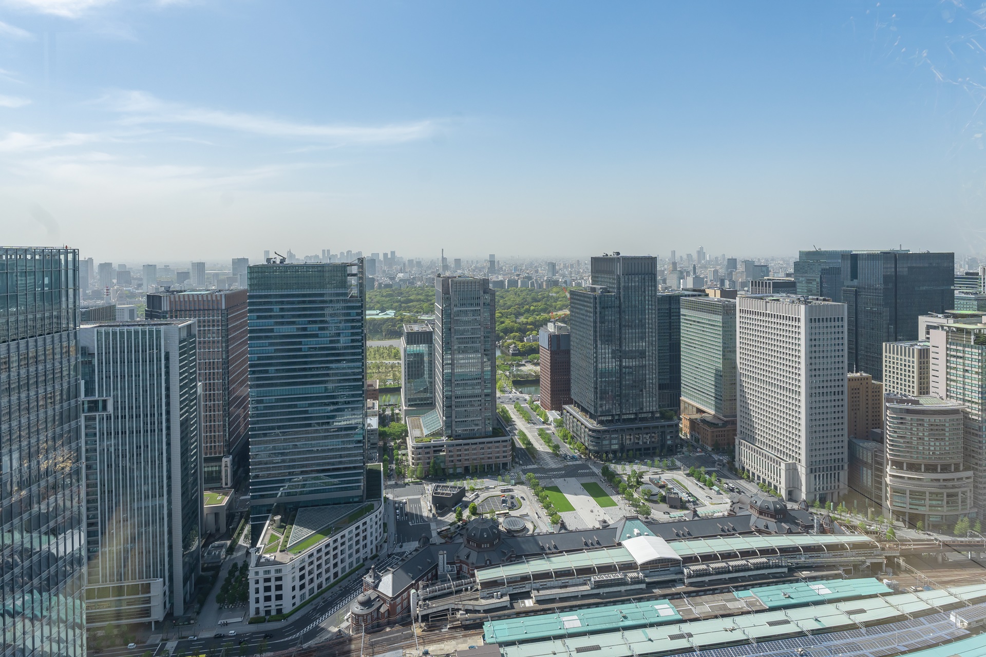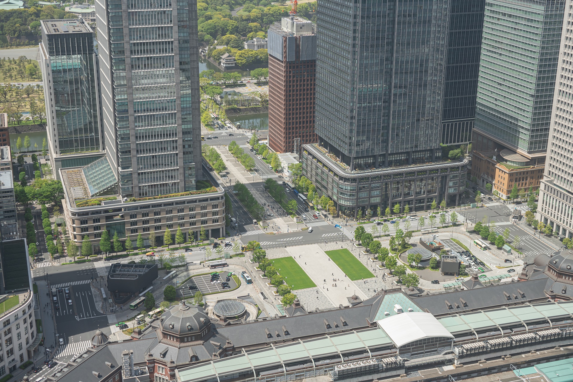 마루노우치 빌딩, 신마루노우치 빌딩, 도쿄역과 도쿄역 앞의 정원의 풍경이 아기자기하게 들어옵니다.