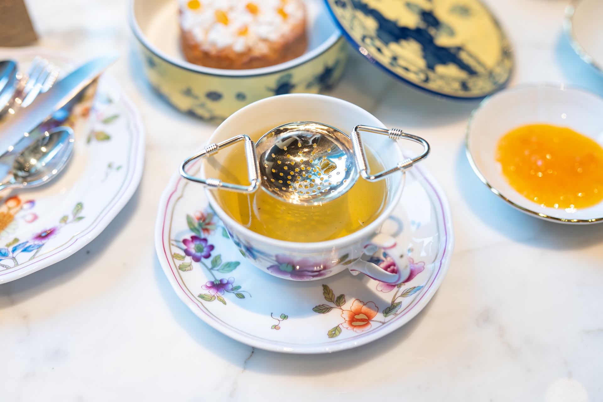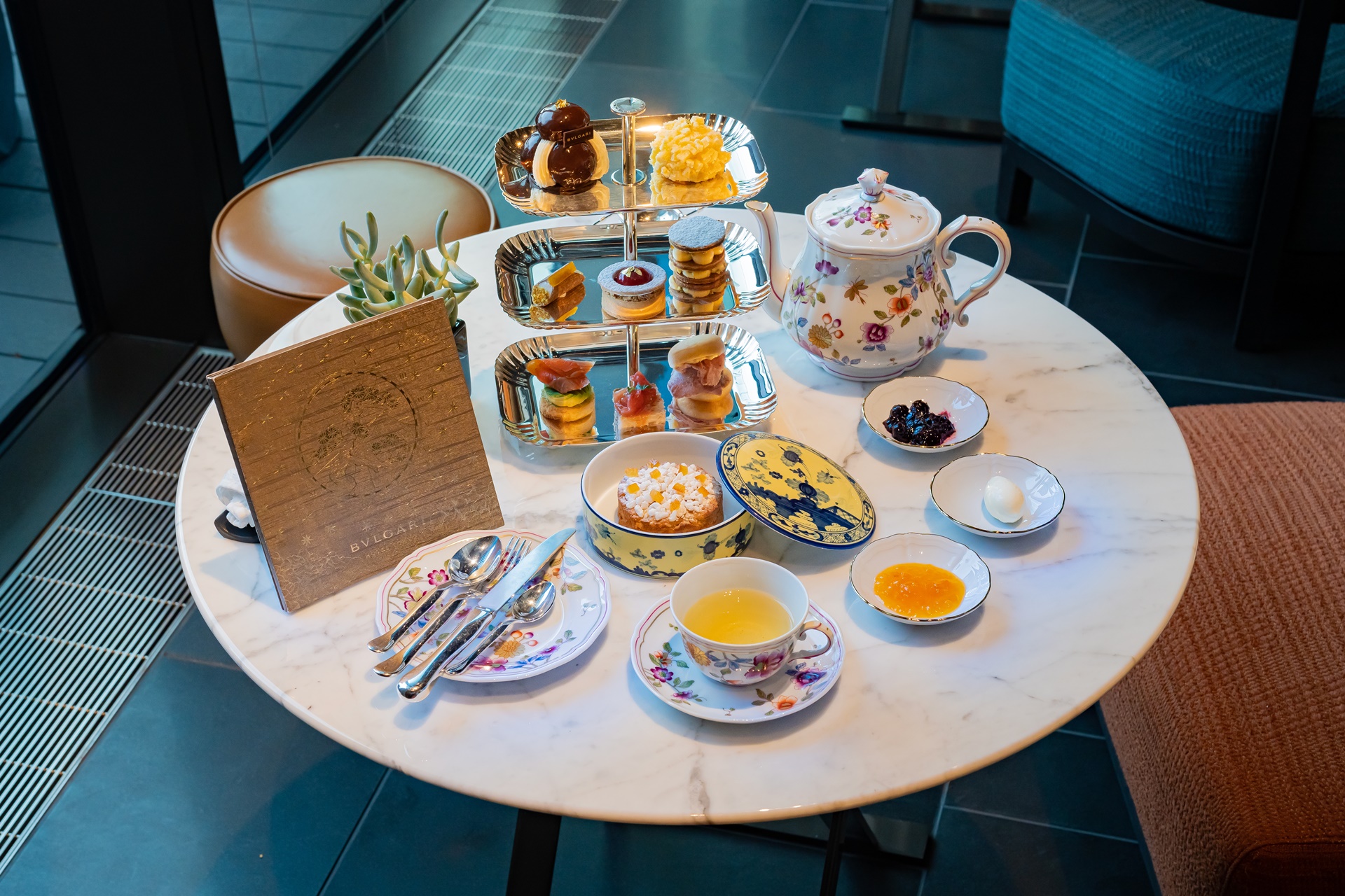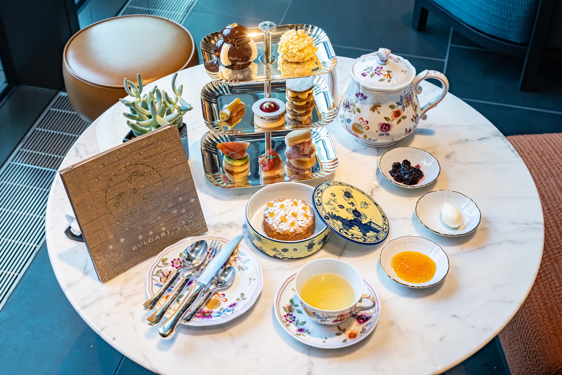 따뜻한 차와 함께 불가리 호텔 도쿄의 애프터눈 티 세트가 시작됩니다.