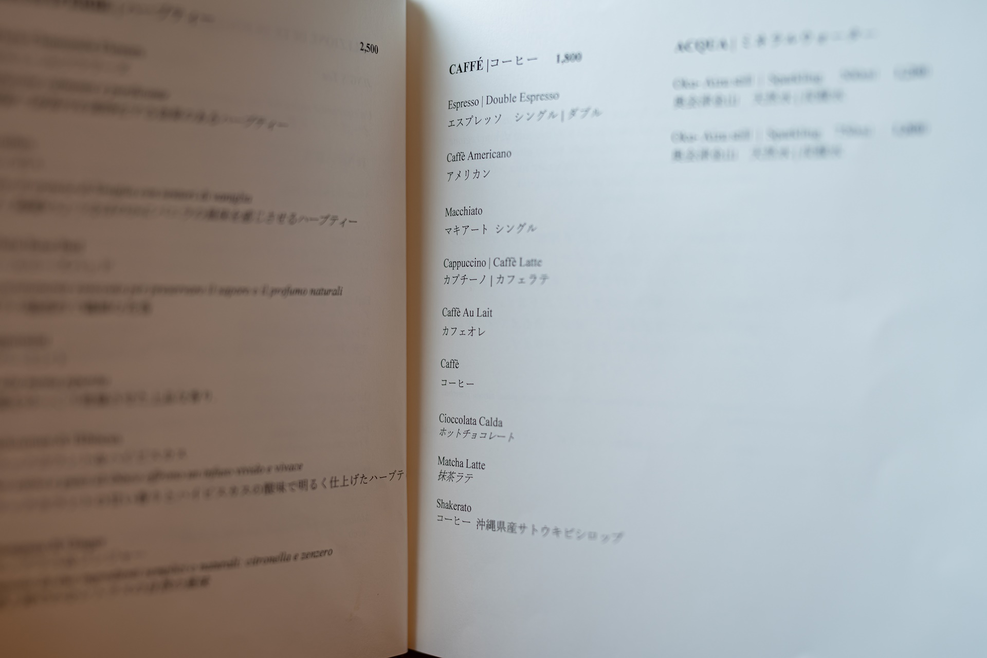 불가리 호텔 도쿄의 라운지 카페 메뉴