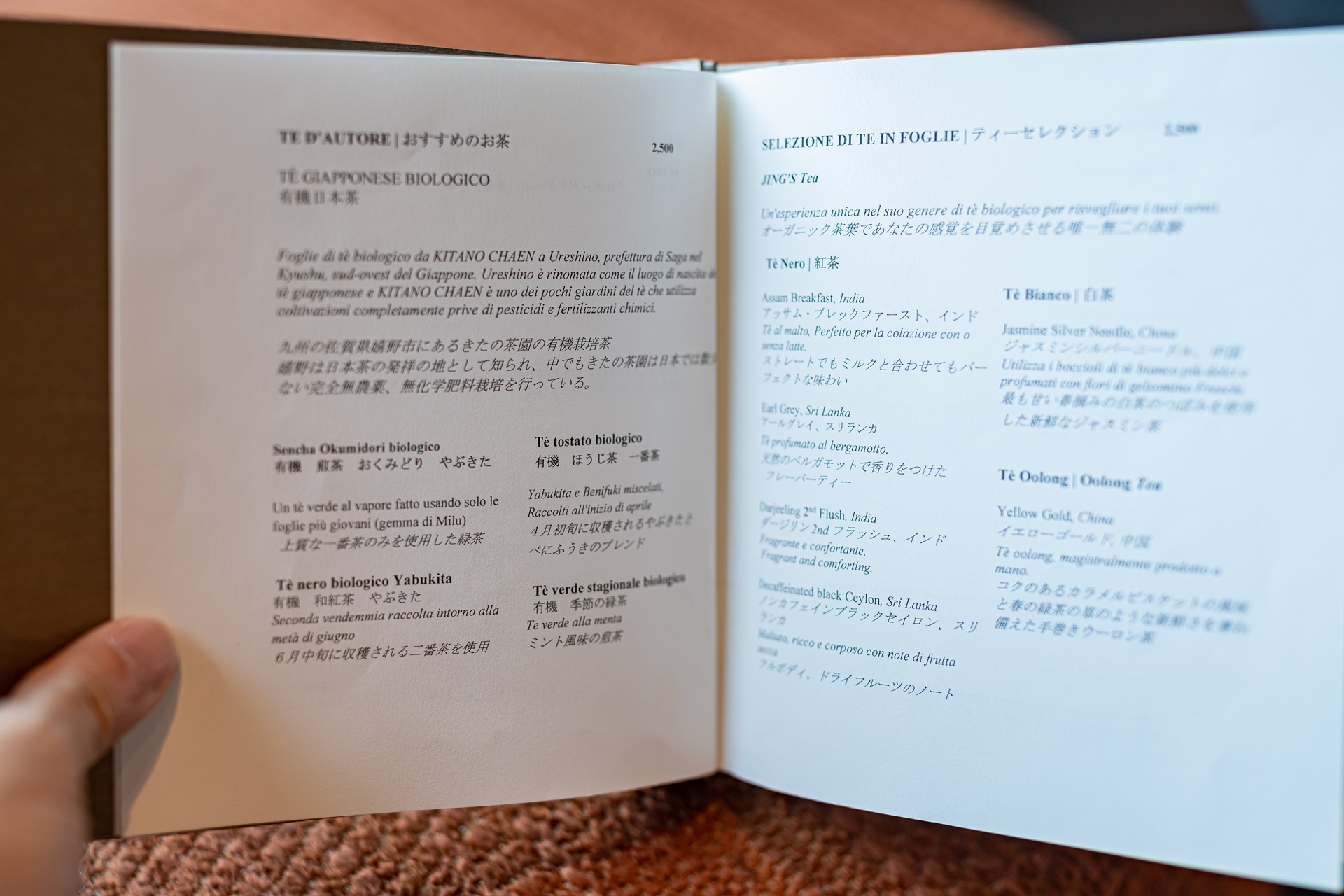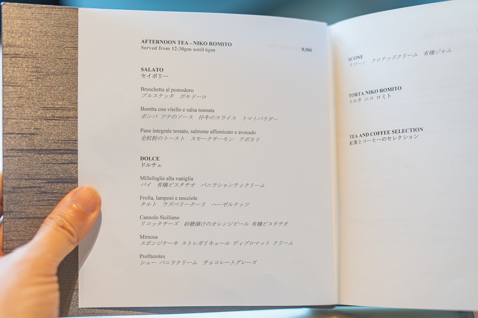 불가리 호텔 도쿄의 애프터 눈 티 세트는 니코 로미토 라는 이름으로 살라토, 돌체, 스콘, 토르타 니코 로미토의 4개 메뉴와 커피, 차의 음료로 제공됩니다.
