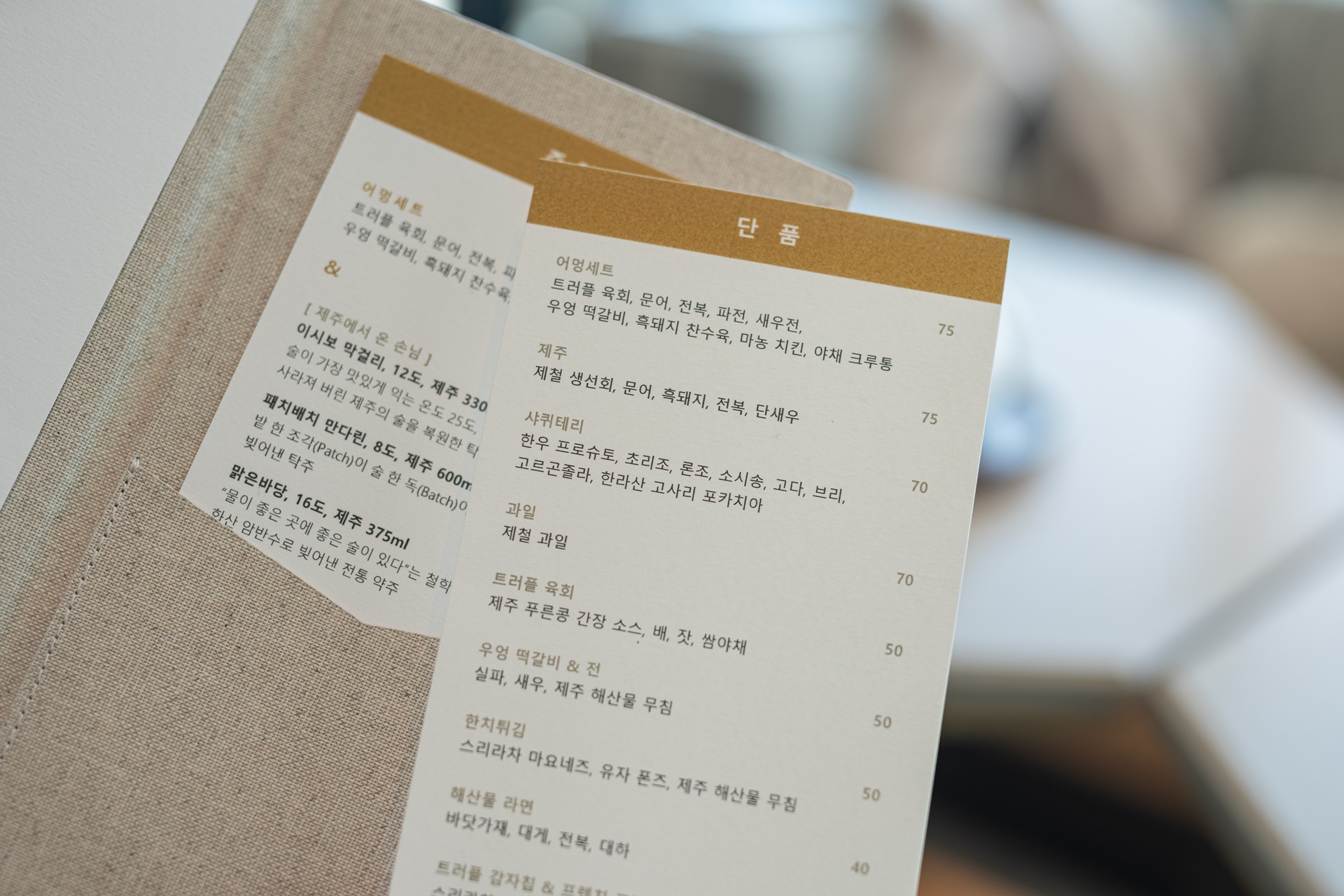 차와 커피에 신경을 써서 직접 제주의 차를 고르고 좋은 커피도 찾아 이곳에서 마실 수 있게 하려고 노력하고 있다고 합니다. (이때는 오픈 직전이라 아직 시스템이 자리 잡지 않았고 안내해주신 분이 앞으로 하나 하나 늘려나가겠다고 설명해 주셨습니다.)