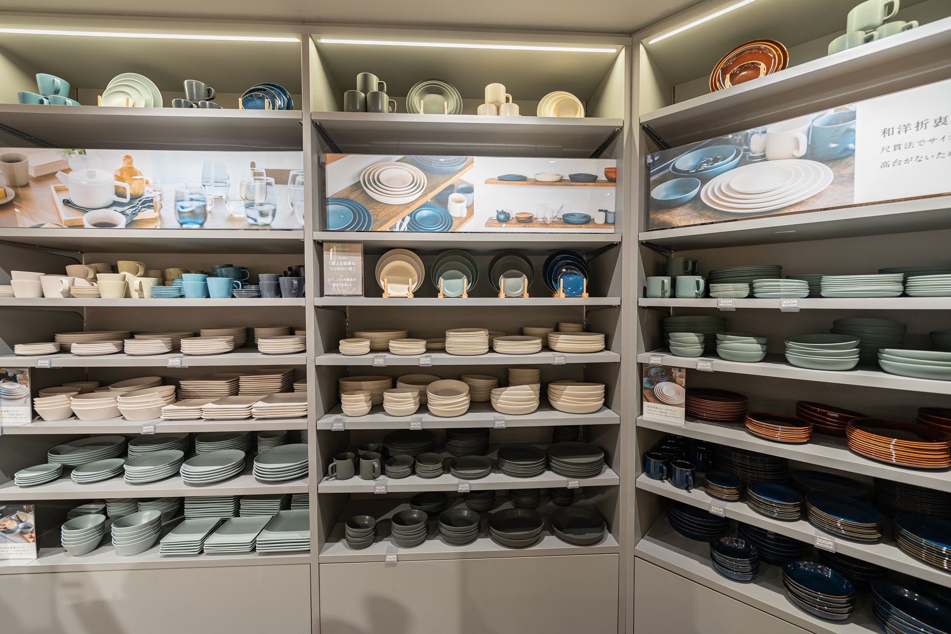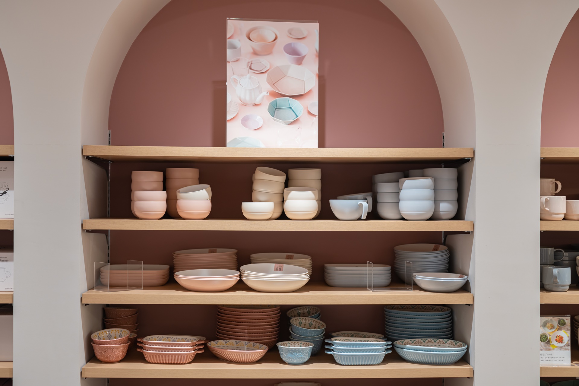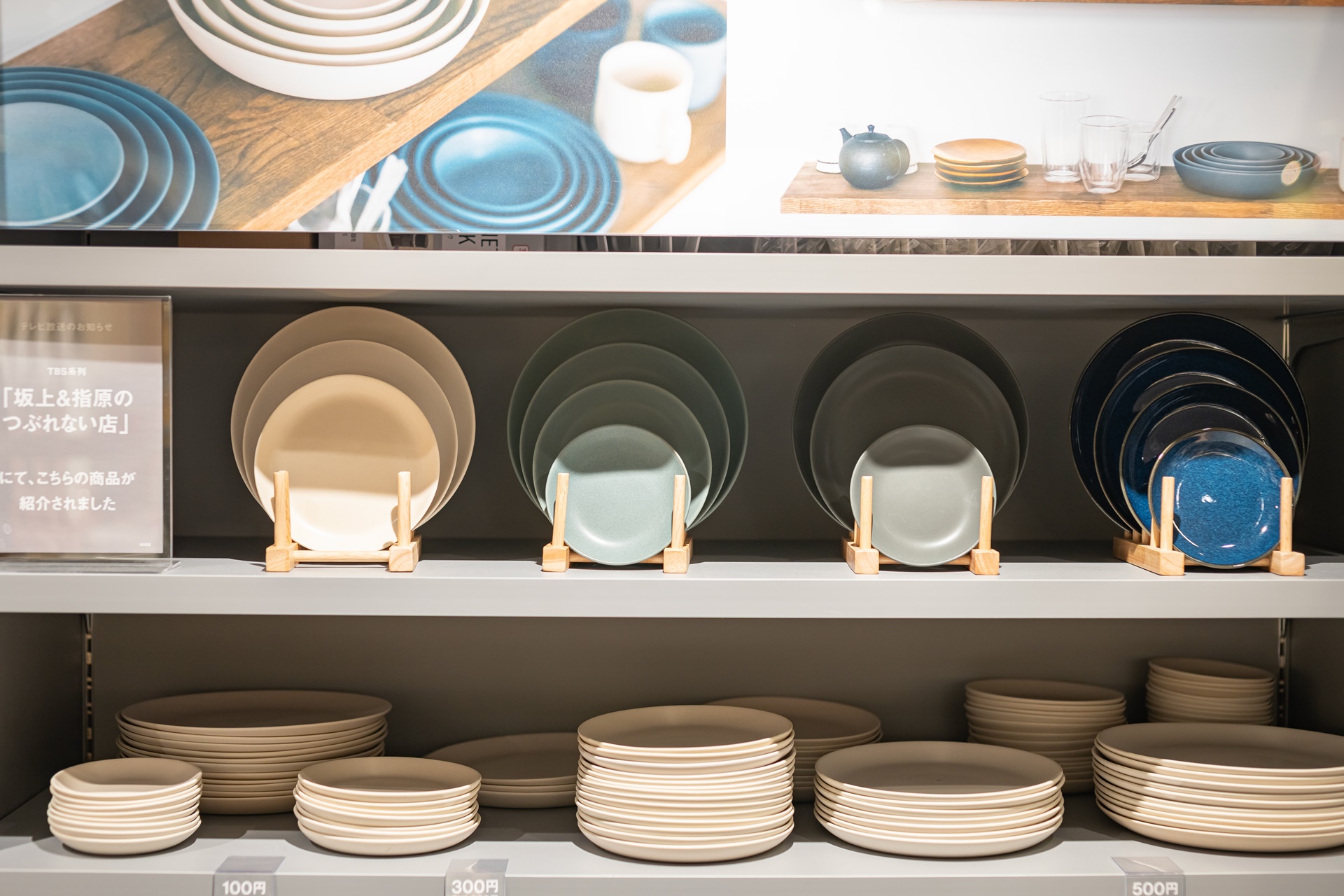 그릇과 접시의 디자인이 간결하며 종류도 다양해서 이곳에서 집의 식기류를 모두 구매해도 좋을 것 같은 느낌입니다. 가격은 대부분 300엔 정도의 상품들이 많았습니다.
