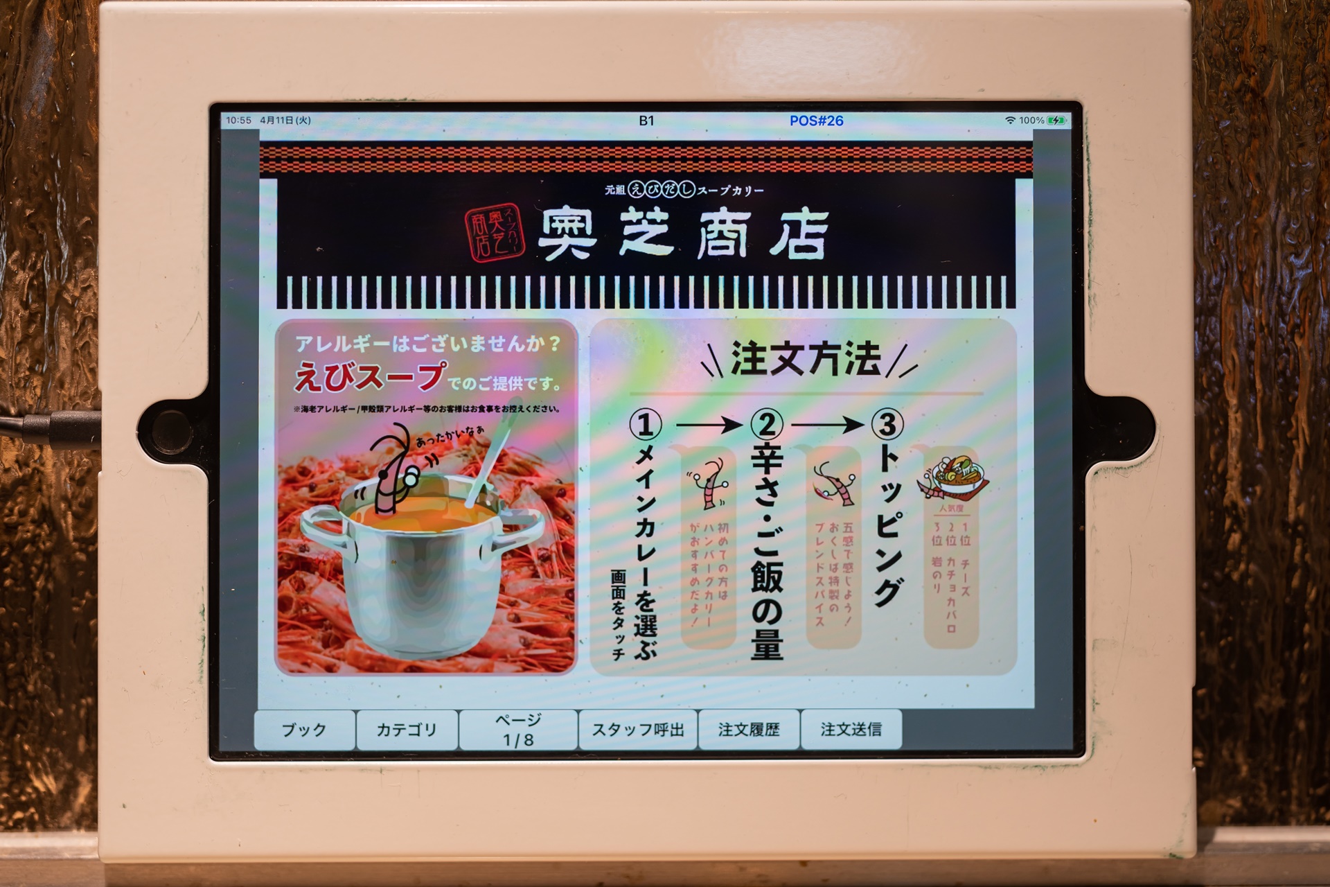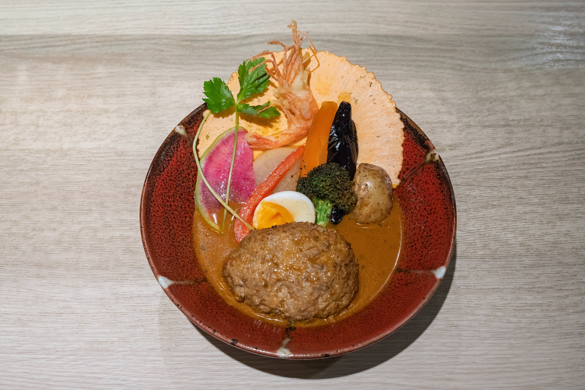 홋카이도의 스프카레 중에서도 이곳은 새우를 듬뿍 넣어 육수를 낸 스프카레를 맛볼 수 있습니다.
